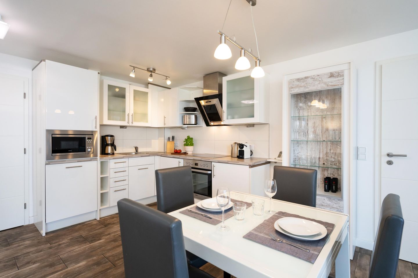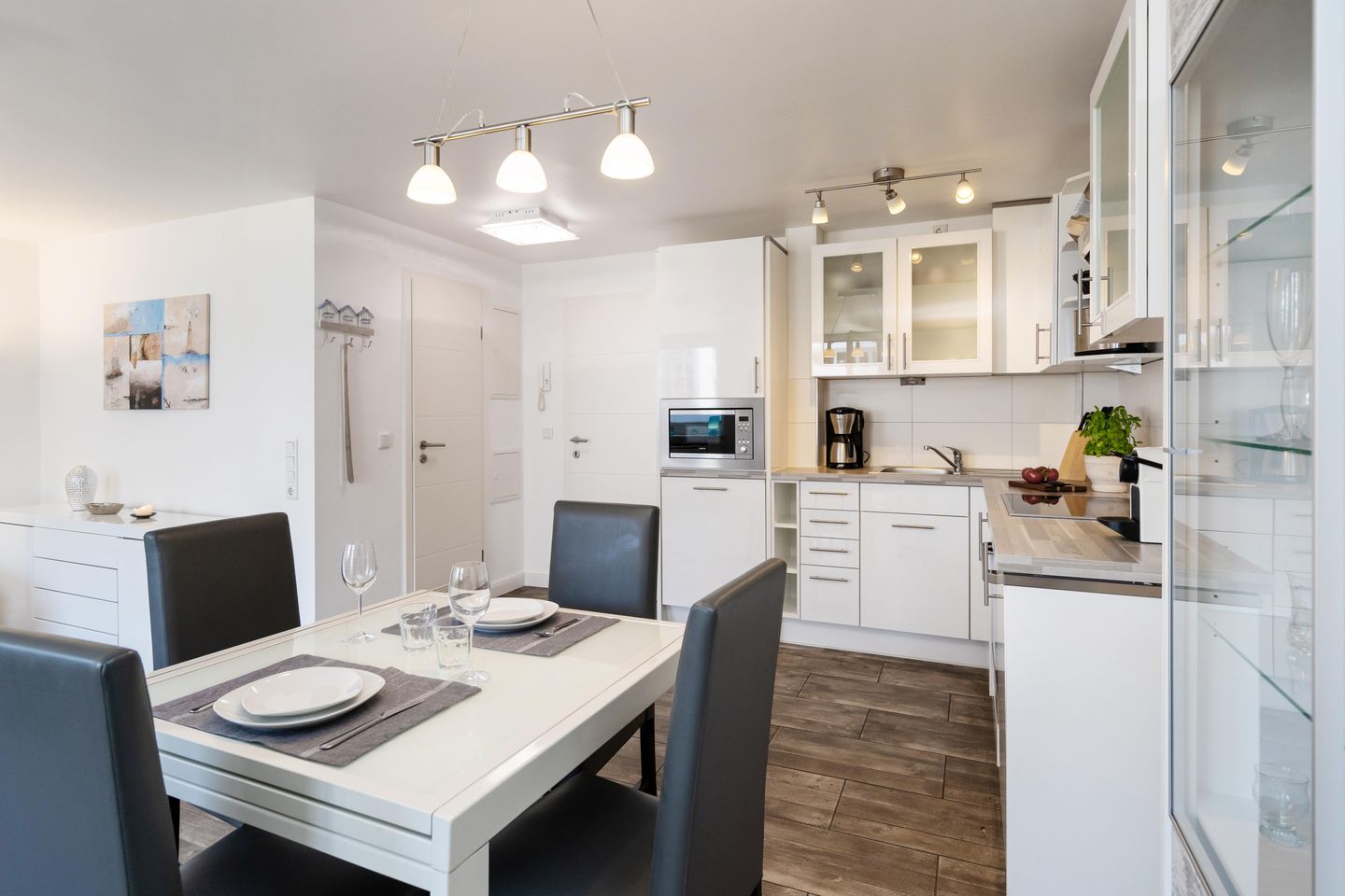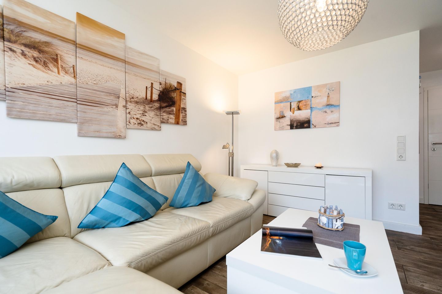 Diese moderne ca. 49 m² große 2-Zimmer Ferienwohnung für bis zu 2 Personen befindet sich im ersten Stock eines Appartementhauses in einer stadt- und strandnahen Lage von Westerland. Es erwartet Sie eine offene, voll ausgestattete Küche mit angrenzendem Wohn- und Essbereich. Das großzügige Ledersofa sowie ein 47 Zoll Smart TV laden zur absoluten Entspannung ein. Durch das Ausziehen des Sofas entsteht eine weitere Schlafmöglichkeit. Das gemütliche Doppelschlafzimmer ist mit einem Flat TV ausgestattet und bietet durch Einbauschränke viel Stauraum. Das moderne Badezimmer verfügt über eine Dusche. Nutzen Sie gerne den schönen Westbalkon mit Blick auf den Strandübergang „Brandenburger Strand.“ Kostenloses WLAN, ein zugehöriger Tiefgaragenstellplatz (Einfahrtshöhe ca. 190 cm, Breite ca. 230, Länge ca. 440 cm) sowie eine Waschmaschine stehen Ihnen zur Verfügung. Haustiere sind erlaubt.