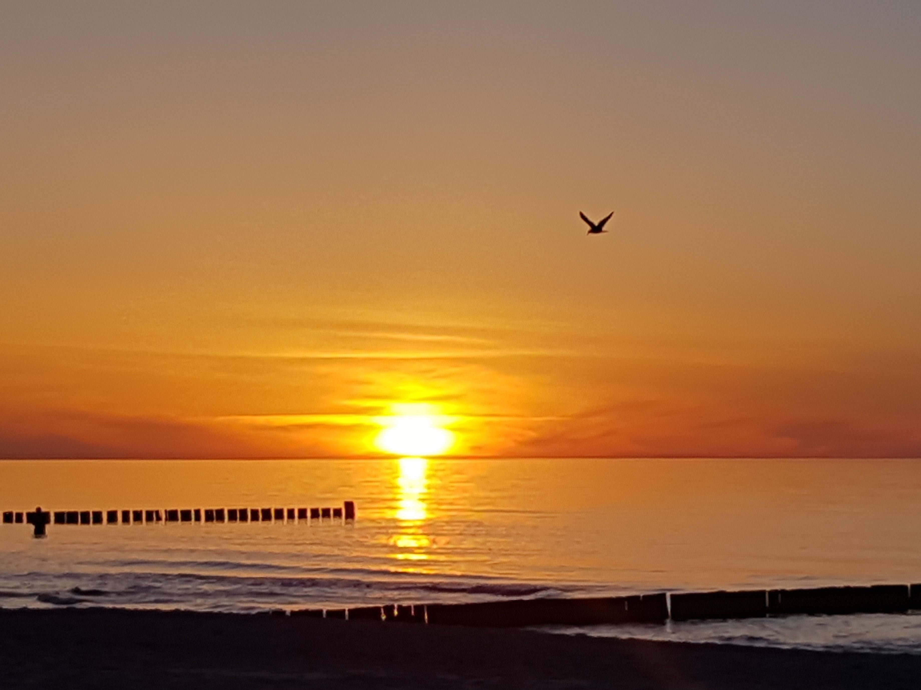 Die Ferienwohnung beinhaltet ein Schlafzimmer mit Blick aufs Meer, einem Doppelbett (180x200cm) und SAT - TV, den Wohnbereich mit Schlafsofa (durchgehende Matratze 160x200cm) und voll ausgestatteter Küchenzeile mit Fenster. Vom Wohnbereich gelangt man auf einen großen Balkon mit herrlichem Blick zur Ostsee, ausgestattet mit Gartenmöbeln und Sonnenschirm. Das Bad mit Fenster hat eine Wanne und Duschmöglichkeit, WC und Haartrockner. Zur Einrichtung gehören ein Bügeleisen, Bügelbrett, ein weiterer SAT-TV und CD-Player im Wohnbereich. Zum Eingangsbereich gehört ein zweiter großer Balkon zur Westseite (Abendsonne) inklusive Gartenmöbel und Sonnenschirm. Alle Fenster sind mit Fliegengittern ausgestattet. Ein PKW-Stellplatz und Fahrradständer stehen im Innenhof des Objektes zur Verfügung. Die Entfernung zum Strand beträgt 40m und zum Ortszentrum sind es 15-20min Fußweg. Im Spätsommer und Frühherbst (September-Oktober) ist die Ferienwohnung der ideale Ausgangspunkt zur Kranichbeobachtung. Die Vögel des Glücks rasten auf den vorgelagerten Boddeninseln von Zingst auf ihrem Flug von Skandinavien ins Winterquartier nach Spanien und Nordafrika.