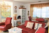Sie ist ausgestattet mit einem Schlafraum (Doppelbett), einem Wohnbereich mit einer Leder-Eckcouchgarnitur mit Schlaffunktion sowie einem bequemen Fernsehsessel mit Dreh- und Kippfunktion. Die Couch trennt die integrierte und gut ausgestattete Küchenzeile optisch ab.