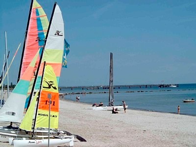 In nur 80 Meter Entfernung ist der herrliche weiße Sandstrand, der zum Sonnen, Schwimmen oder auch zum Wassersport einlädt.