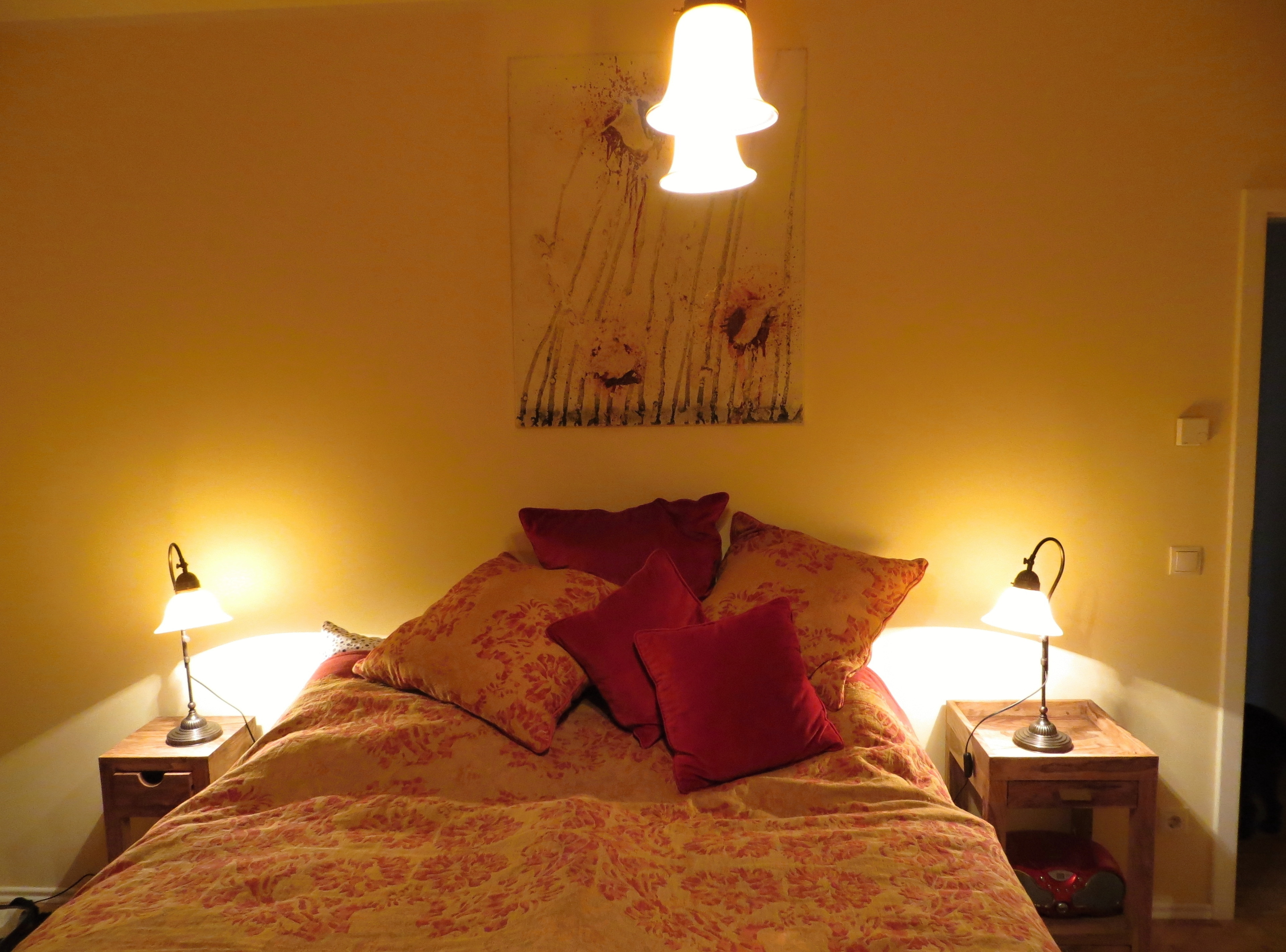 Das Schlafzimmer, mit komfortablen, an Kopf- und Fußende verstellbaren Betten ausgestattet, lädt auch am Tage zum Verweilen ein. Am Sekretär kann man schreiben oder lesen und es gibt die Möglichkeit Musik zu hören, Videos anzuschauen oder abends gemütlich im Bett Fernzusehen. Bei Wellengag ist von hieraus das Meeresrauschen zu hören.