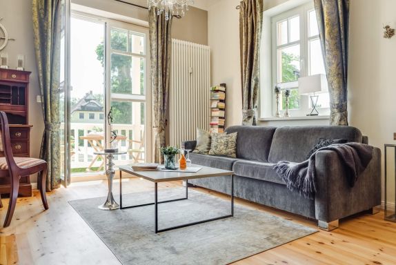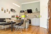 Die gehobene und geschmackvolle Ausstattung der Wohnung sorgt für entspannte Urlaubstage und lässt kaum Wünsche offen. Zur Ausstattung gehören eine Einbauküche mit Bosch Geschirrspüler und Dunstabzugshaube, Gaggenau Kühl- Gefrierkombi, Kaffeemaschine und Nespressomaschine, Toaster, Wasserkocher, Cerankochfeld mit Backofen, Radio und ein Esstisch für 4 Personen. Im angeschlossenen Wohnzimmer erwartet Sie ein gemütliches Sofa samt Kuscheldecke dieses kann bei Bedarf zu einem vollwertigen Bett in Stuhlhöhe mit eigener Kaltschaummatratze verwandelt werden.