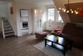 Die Wohnfläche der ca. 120 m² großen Unterkunft verteilt sich über zwei Etagen (1. und 2. Stock) auf ein weitläufiges Wohnzimmer, eine separate Küche sowie das Badezimmer und zwei separate Schlafzimmer.