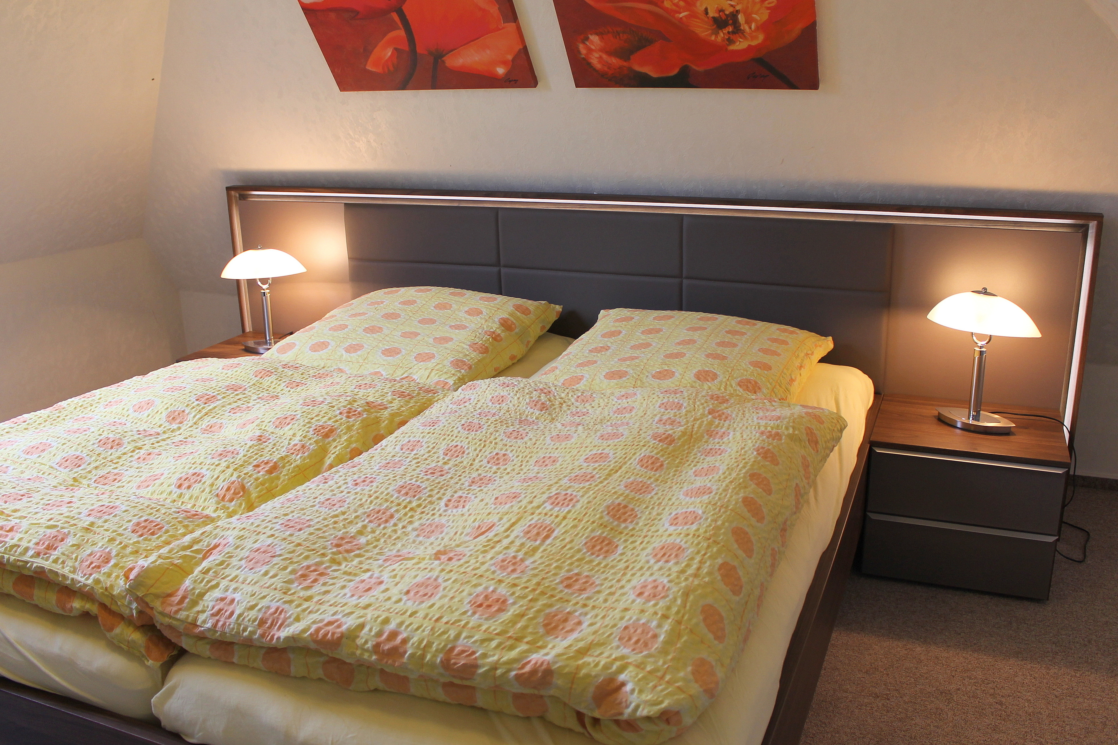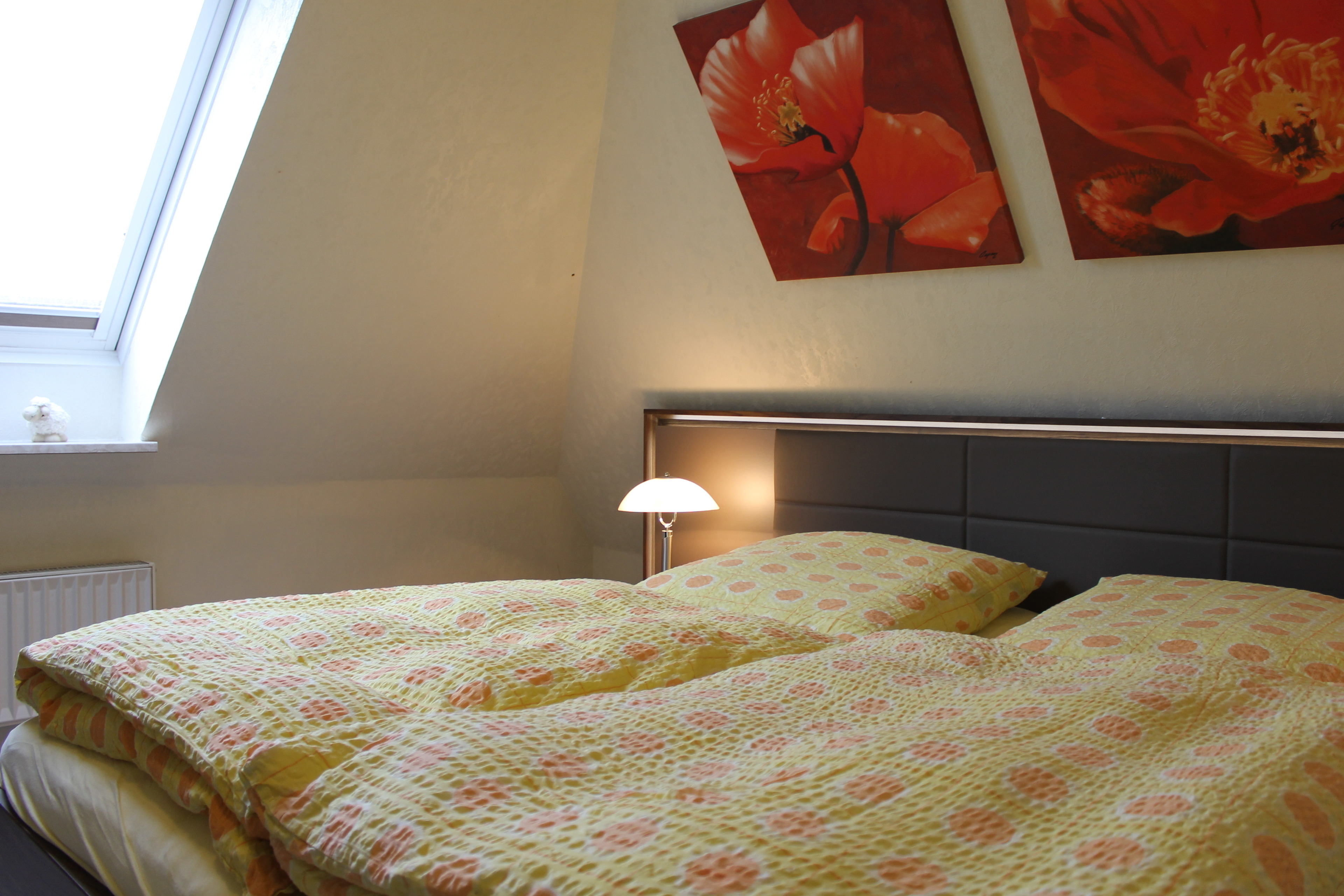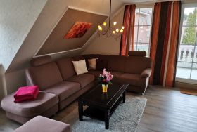 Der große und helle Wohnbereich bietet Ihnen viel Platz zum Entspannen, ob zu gemütlichen Stunden auf dem Sofa vor dem elektrischen Kamin, über dem der Flachbild-TV hängt oder zu Lesestunden in der Leseecke, in der sich auch ein Schreibtisch für geschäftliche Angelegenheiten (wenn es denn mal sein muss!) befindet. Ein großer Esstisch lädt zu einem ausgiebigen Frühstück ein. Von dem Wohnzimmer haben Sie Zugang zum großen möblierten Balkon. Die separate Küche ist u.a. mit einer Spülmaschine, einem 4-er Ceranherd, einem Backofen und weiteren Küchengeräten ausgestattet. Ein kleinerer Essplatz steht Ihnen in der Küche ebenfalls zu Verfügung. Über eine Treppe gelangen Sie in die zweite Etage. Hier befindet sich eine kleine Sitzecke, das Tageslicht-Badezimmer sowie zwei große Schlafzimmer. Das Badezimmer ist mit einer Dusche sowie WC, Waschbecken und kleinen Schränkchen versehen. Beide Schlafzimmer sind mit einem Doppelbett (getrennte Matratzen), einem Einbaukleiderschrank sowie einer Sitzmöglichkeit versehen. Beide Schlafräume können komplett abgedunkelt werden.