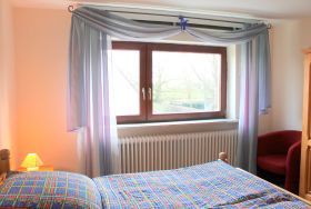 In den Schlafzimmern sind Thermorollos zur Verdunkelung angebracht.
