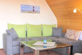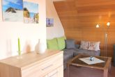 Das Wohnzimmer ist mit gemütlicher Sitzecke, TV und einem Essplatz für vier Personen versehen - von hier aus haben Sie Zugang zum möblierten Südwest Balkon sowie zur Küche. Die kleine Küche ist u.a. mit Backofen, 4-Platten-Herd und Kaffeemaschine ausgestattet. Desweiteren sind zwei separate Schlafzimmer vorhanden, eins ist mit einem Doppelbett 1,90 x 1,80 m(getrennte Matratzen) und Kleiderschrank versehen und eins mit zwei Einzelbetten sowie einem Waschbecken. Das Tageslicht-Badezimmer mit Dusche / WC ist auf zwei Räume aufgeteilt - Waschbecken und Dusche in einem und das WC in einem kleinen separaten Raum, der vom Badezimmer abgeht - beide Räume sind mit Fenster ausgestattet.