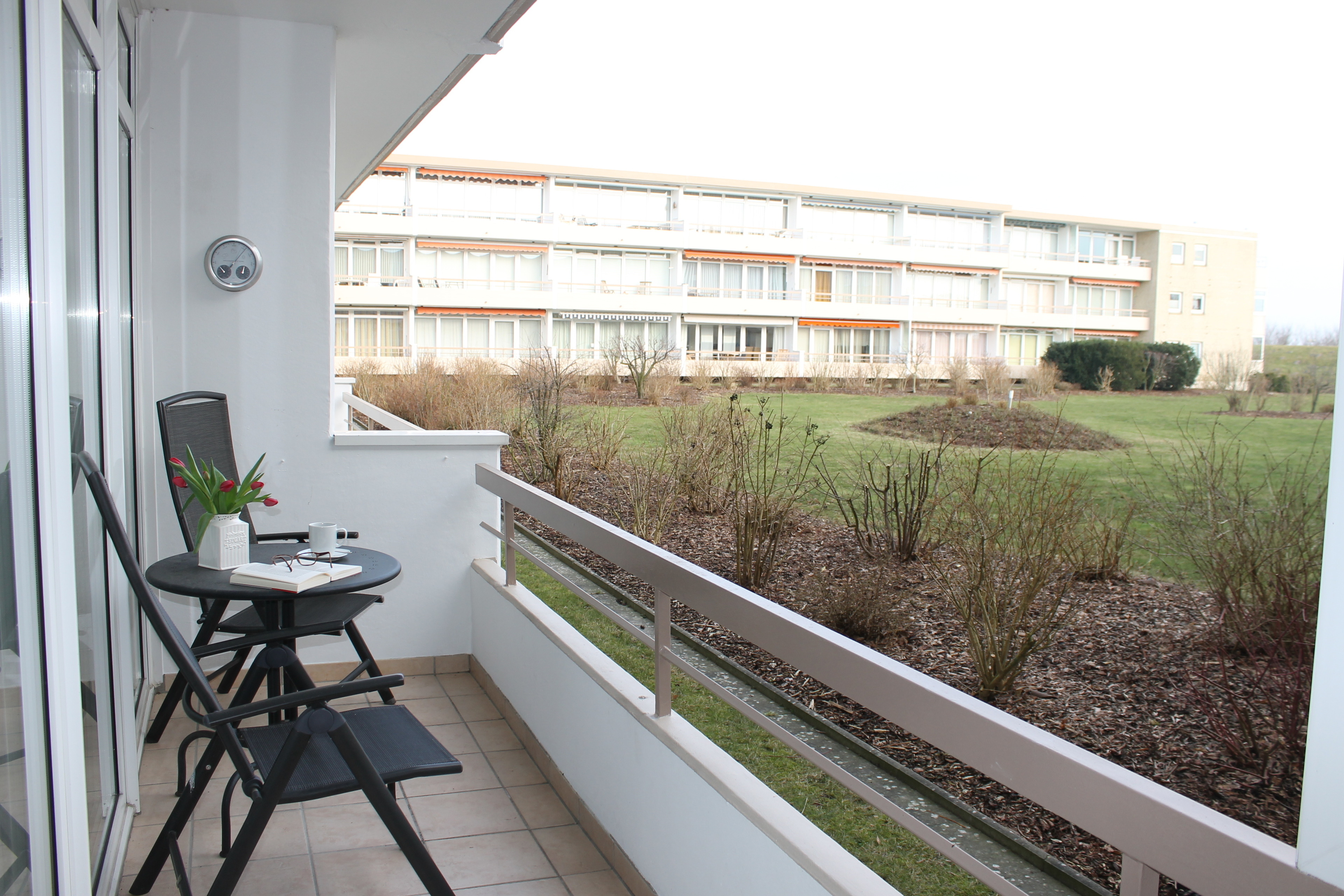 Wir bieten Ihnen eine gepflegte und geschmackvoll ausgestattete 2-Zimmer-Nichtraucherwohnung an. Sie ist 43 m² groß und liegt im Hochparterre. Zur Wohnung gehört ein eigener Parkplatz. Vom großen Balkon haben Sie einen schönen Blick über die Gartenanlage bis zum Deich.