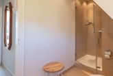 Badezimmer: Modernes Duschbad mit WC und Fenster.