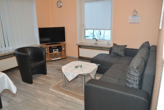 Die Erdgeschosswohnung bietet auf ca. 65 m² Platz für bis zu vier Personen und besteht aus einem gemütlichen Wohnzimmer mit Sat-TV, einer Terrasse für entspannte Stunden im Freien und zwei Schlafzimmern mit jeweils einem komfortablen Doppelbett. Das Badezimmer verfügt über eine Dusche und WC. In der separaten Küche finden Sie alles, was Sie für Ihre Selbstversorgung benötigen, wie einen Backofen, Geschirrspüler, Mikrowelle und Ceranfeld.