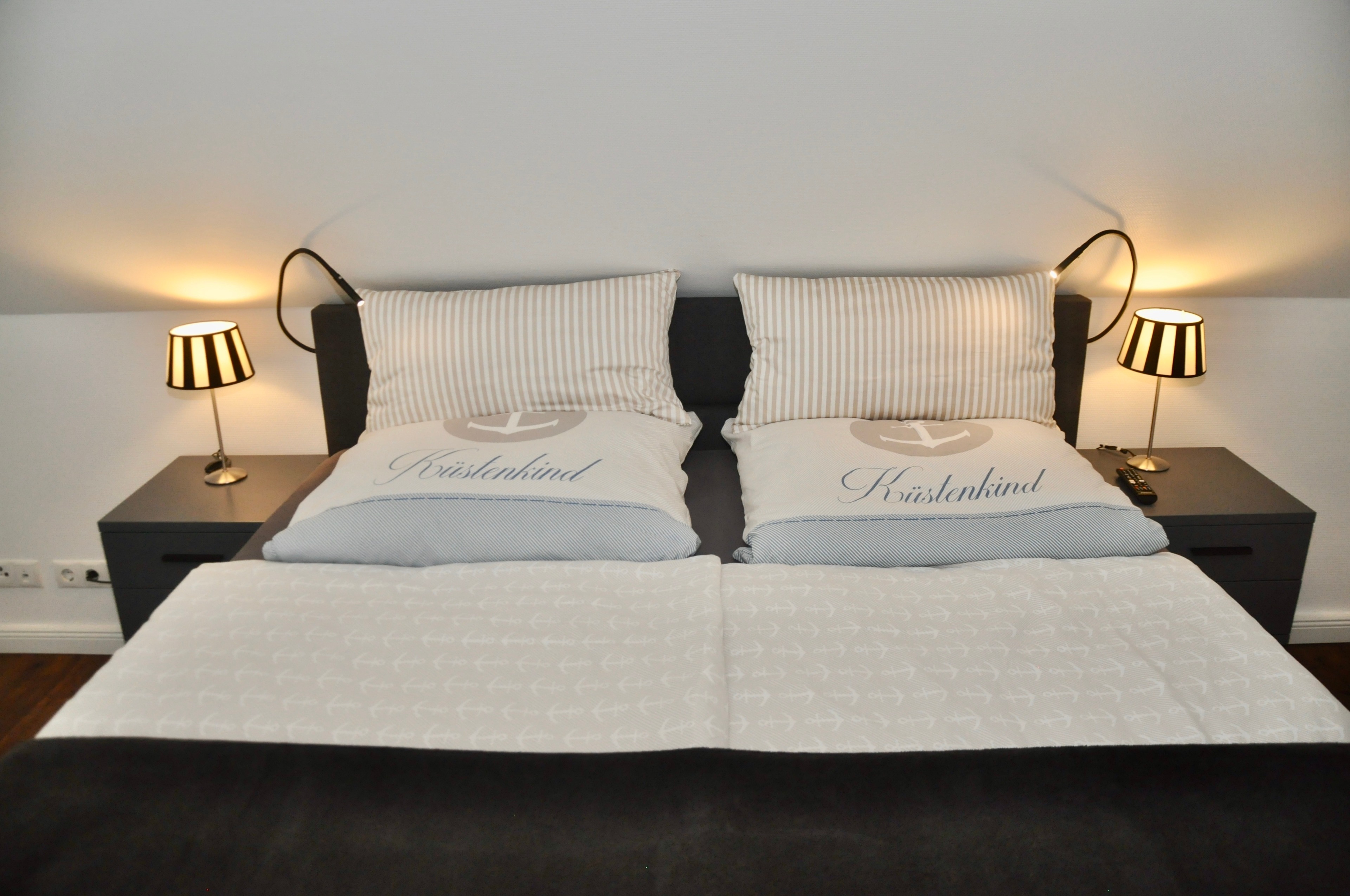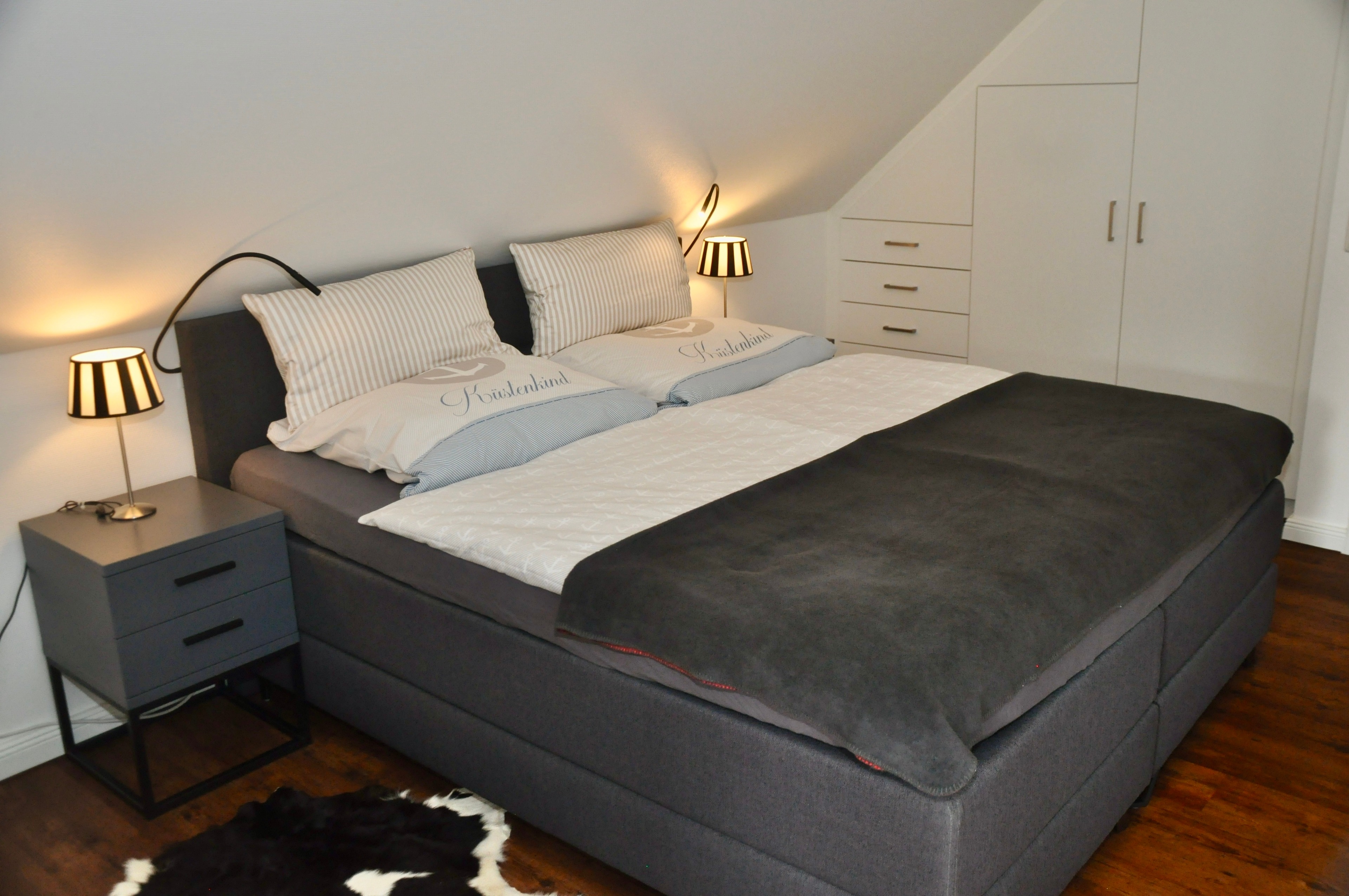 Innen erwarten Sie zwei Schlafzimmer mit komfortablen Boxspring-Betten der Marke SWISS SENSE (1x 160x200 cm, 1x 180x200 cm), ein Tageslichtbad mit Fußbodenheizung, großer separater Dusche und XL-Badewanne, sowie ein helles gemütlich eingerichtetes Wohnzimmer, mit allem was man sich zum relaxen wünscht.