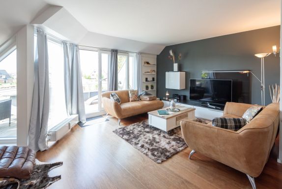 Diese hochwertige Maisonette-Ferienwohnung befindet sich in einer eingewachsenen, ruhigen Wohnanlage und überzeugt mit hohem Komfort und liebenswerten Details.