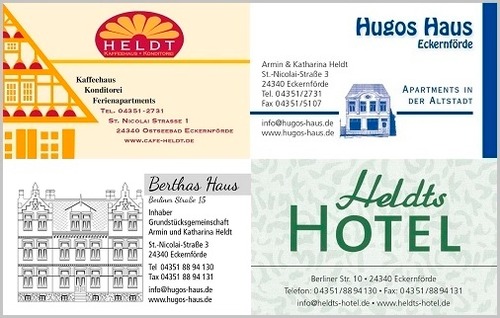 Die Rezeption befindet sich gegenüber von der Unterkunft im Heldts Hotel in der Berliner Straße Nr. 10.