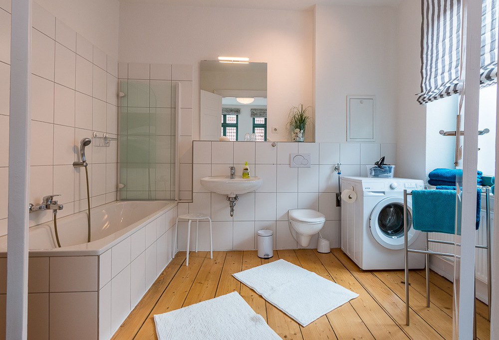 Um ihr Reisegepäck zu entlasten, befindet sich in der Wohnung neben einer Waschmaschine auch Bettwäsche, Handtücher ( außer Strandtücher) Fön und Radiowecker.