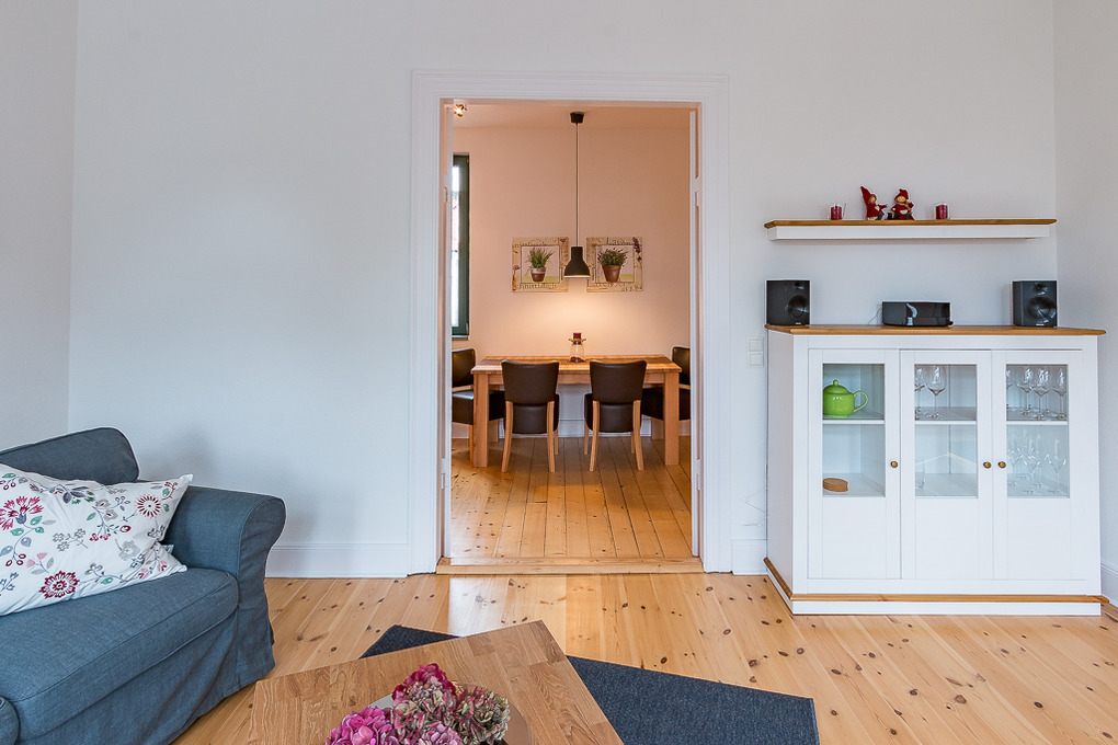 Große Flügeltüren und die gut erhaltenen Holzdielen geben dieser Wohnung den Charme der guten alten Zeit.