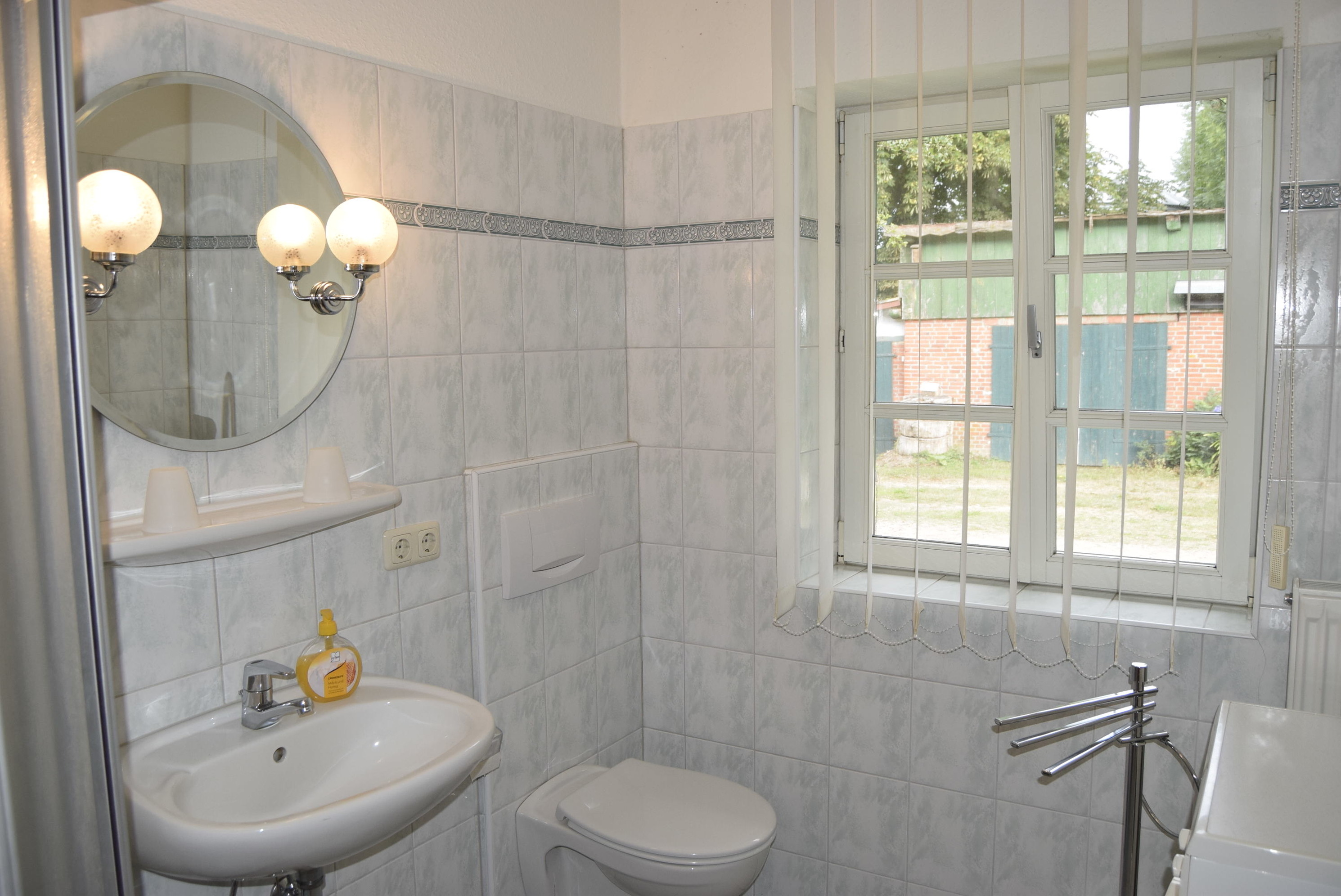 In dem gut 5qm großen Badezimmer ist eine Dusche, ein WC und ein Waschbecken mit Spiegel vorhanden. In der vorhandenen Waschmaschine erledigt sich Ihre Wäsche von selbst, während Sie einen Tagesausflug genießen. Darüber hinaus stehen Ihnen genügend Ablageflächen für Ihre Kosmetikartikel zur Verfügung.
