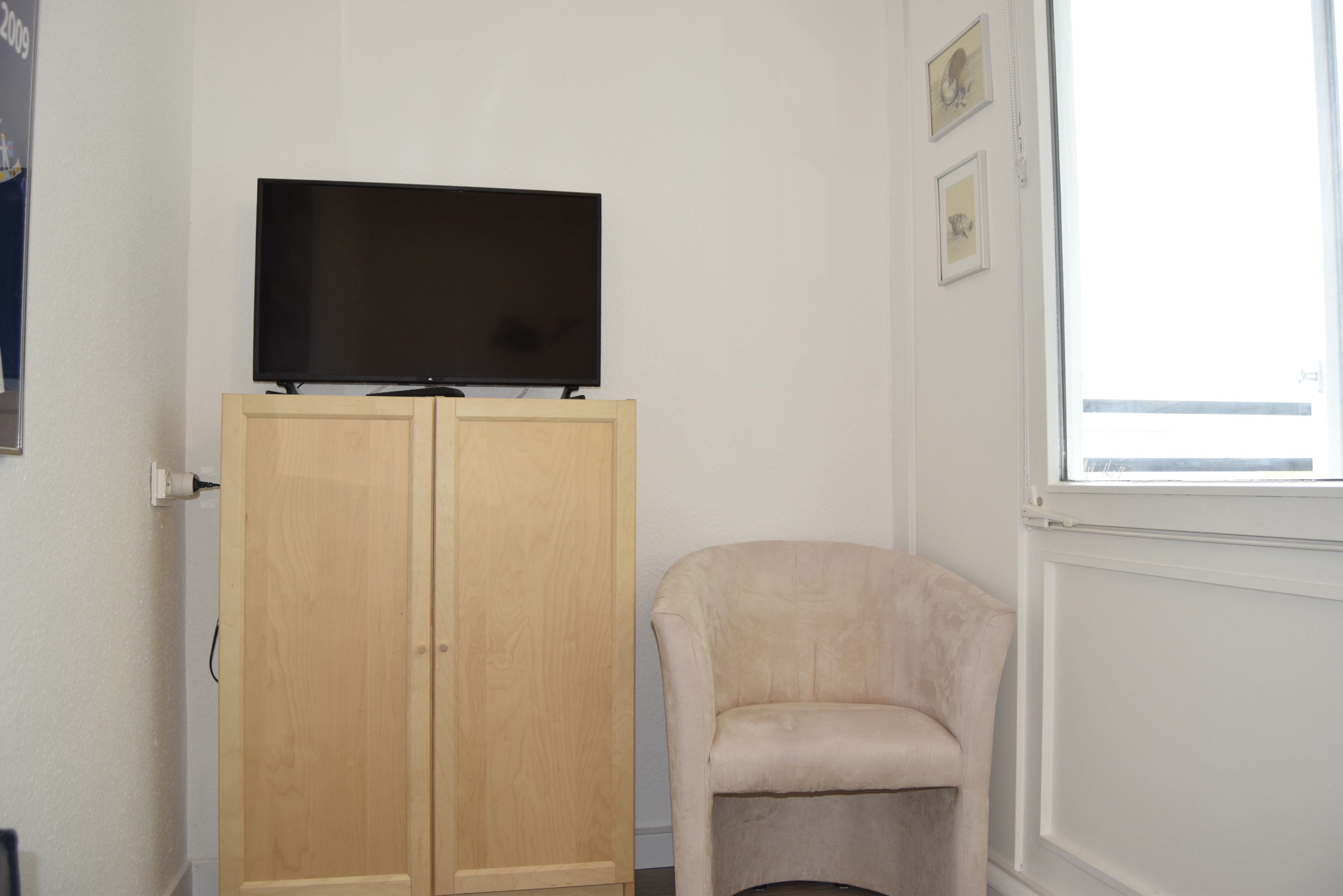 Mittelpunkt des Appartements ist der große Wohn- und Essbereich. Die Einrichtung des Wohnbereiches besteht aus einem Sofa mit Schlaffunktion und Bettkasten, einem Sofatisch, einem Schrank, einem Flachbild-TV, einem Blueray-Player und einer DAB Musikanlage. Ein WLAN-Zugang kann bei Bedarf bei einem regionalen Anbieter vor Ort gegen Gebühr dazu gebucht werden. Die Essecke bietet ausreichend Platz für 4 Personen. Ein Kinderhochstuhl steht bei Bedarf zur Verfügung.