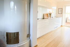 Küche: Die hochwertige, brandneue Küche aus Januar 2019 ist mit Miele Geräten und einem Eisbereiter ausgestattet.