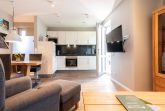 Koch-/Wohn-/Essbereich: Die gemütliche Sofaecke mit Sessel und TV sowie der Essplatz für 4 Personen laden zum Entspannen und Genießen ein. Die offene Küche wurde perfekt in den Raum integriert. Durch ihre hochwertige und moderne Ausstattung lässt sie keine Wünsche offen.