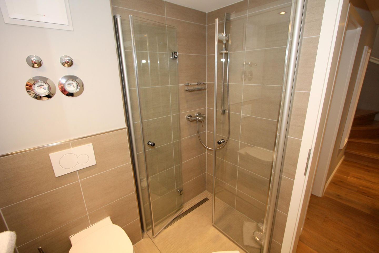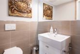 Das Erdgeschoss verfügt über ein Gäste-WC sowie einen kleinen Abstellraum für Schuhe und Koffer.