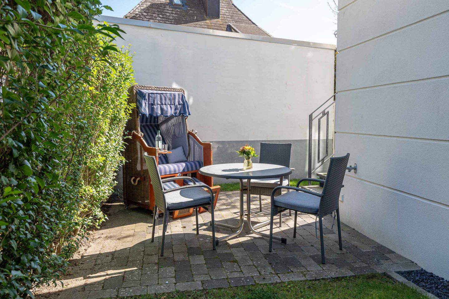 Terrasse: Diese Wohnung bietet Ihnen eine Terrasse mit edlem Mobiliar und Saisonstrandkorb.