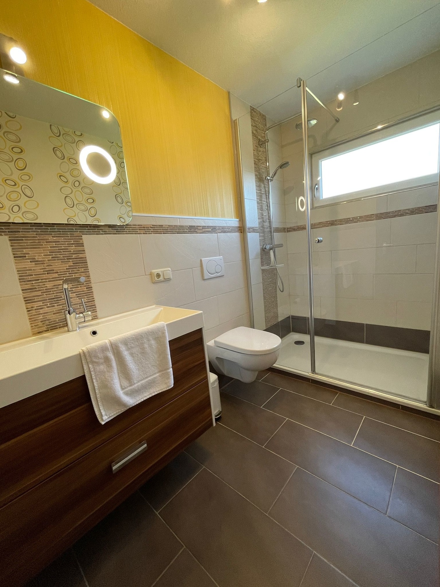 •Badezimmer mit Wellnessdusche und Fußbodenheizung