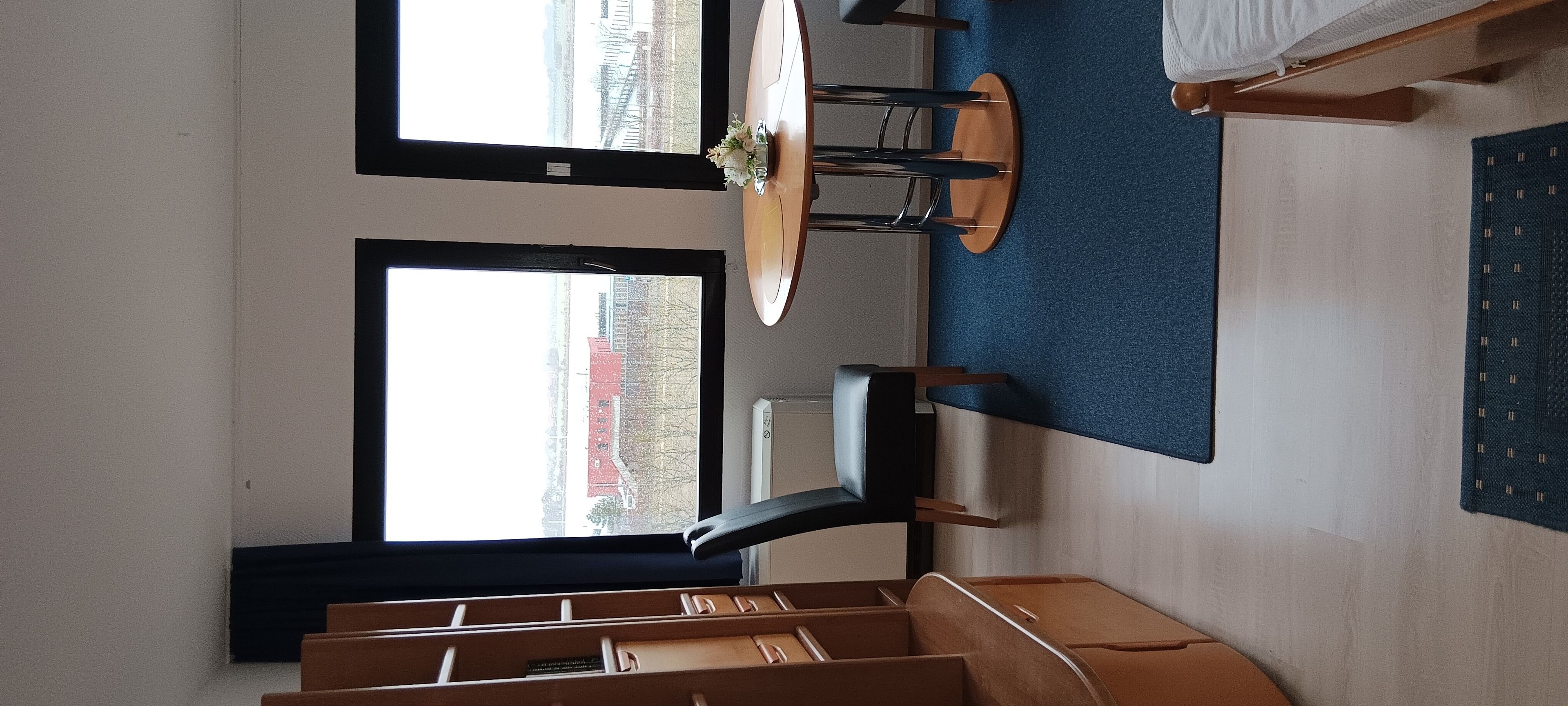 Sie verfügt über 2 Einzelbetten, die durch einen Nachtschrank getrennt sind.