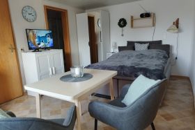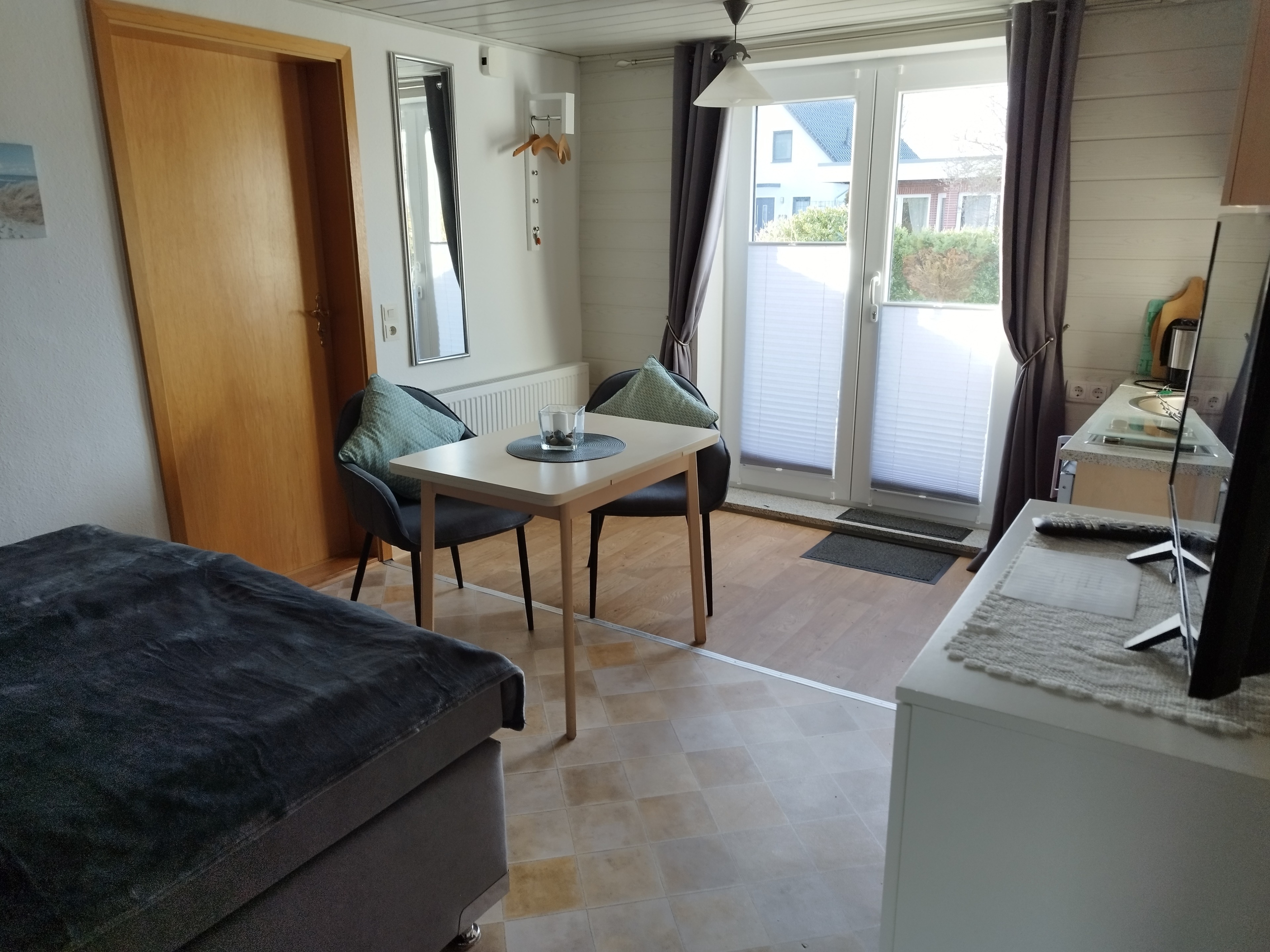 Die gemütliche kleine 1,5 Zi.- Wohnung Nr.3 = (23 qm) mit Terrasse für 1-2 Pers. mit Internet u. Safe incl. Die Ferienwohnung ist auch ideal als Single, Mutter-Kind, Vater-Kind-Ferienwohnung oder für getrenntes Schlafen. Die Fewo liegt im Parterre . Separater Eingang über die Terrasse und wie folgt aufgeteilt: