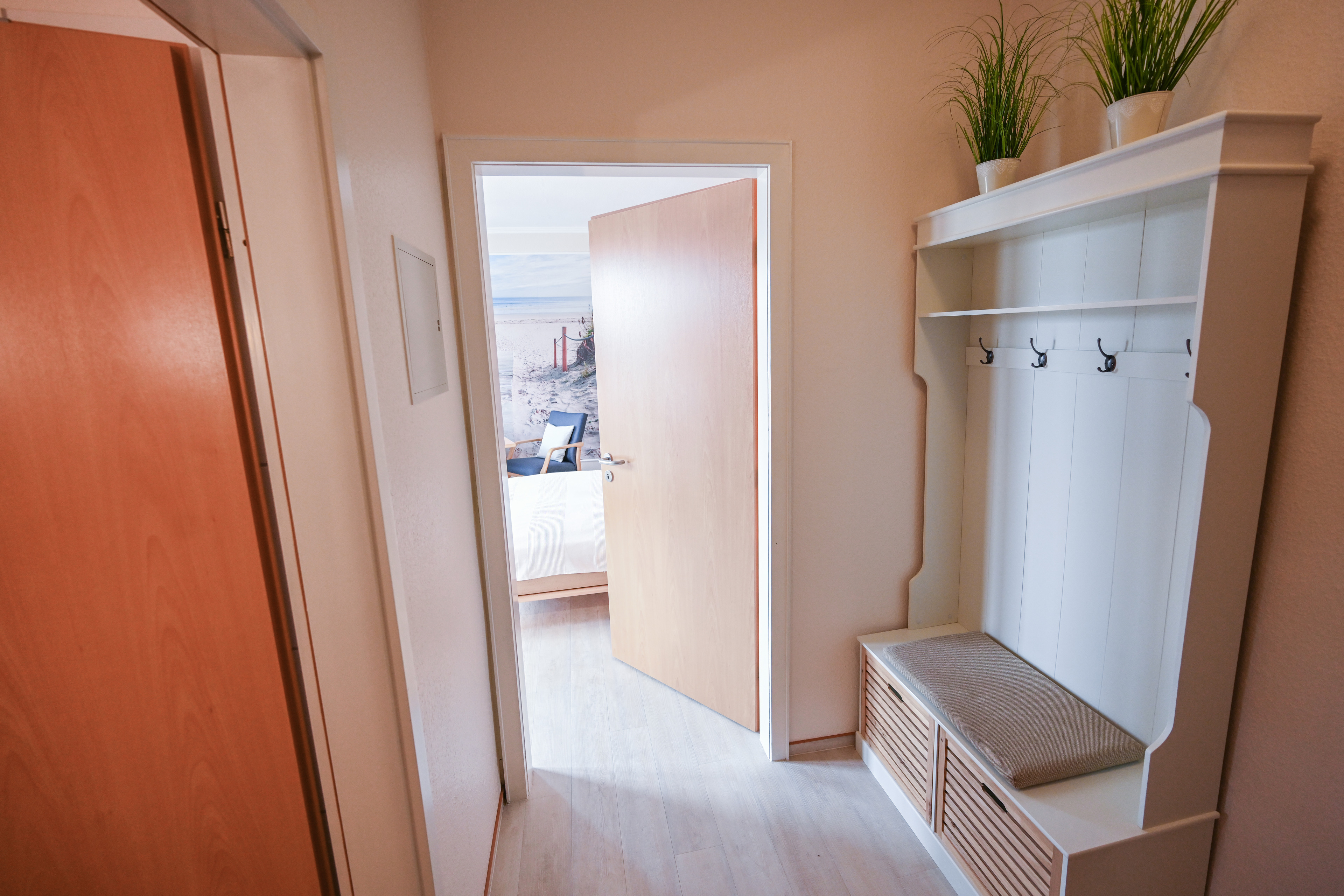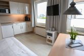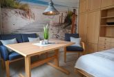 Die 1-Raum-Ferienwohnungen Nr. 8, bietet 2 Personen ausreichend Platz. Sie ist mit einem Wohnschlafraum mit Doppelschrankbett, Einbaukochzeile, Dusche/WC und Flur ausgestattet, und hat zum Teil seitlichen Seeblick. Sie befinden sich im 1. Stock.