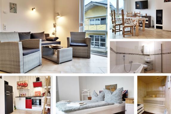 In unseren zehn Appartements unterschiedlicher Größe erwartet Sie eine gehobene Ausstattung, die mit allen Annehmlichkeiten für einen erholsamen Urlaub an der Ostsee aufwartet. Die modern eingerichteten Ferienwohnungen sind mit allem, was man für den perfekten Urlaub braucht, ausgestattet: moderne Küche mit Backofen, Cerankochfeld und Kühlschrankkombination sowie Geschirrspüler; Bad mit Dusche, Whirlpool und Sauna; Schlafzimmer mit komfortablen Betten und Wohnzimmer mit gemütlicher Couch und Fernseher zur Unterhaltung am Abend. Sie können sich zum einen in den schönen Sommermonaten auf ihrer privaten Terrasse oder einem schönen großzügigen Balkon erholen. Zudem sind alle Wohnungen mit einem Kamin und einer Sauna ausgestattet, die ihnen auch die kühleren Monate des Jahres versüßen. Die Steilküste und der Strand liegen um die Ecke und sind gut durch einen kleinen Spaziergang zu erreichen. Auch eine Wanderung auf den nahen Streckelsberg lohnt sich. Einkaufsmöglichkeiten sowie Restaurants gibt es zahlreiche im Ort und sind alle fußläufig zu erreichen. Karls Erdbeerhof ist ein täglicher Anziehungspunkt für Groß und Klein.
