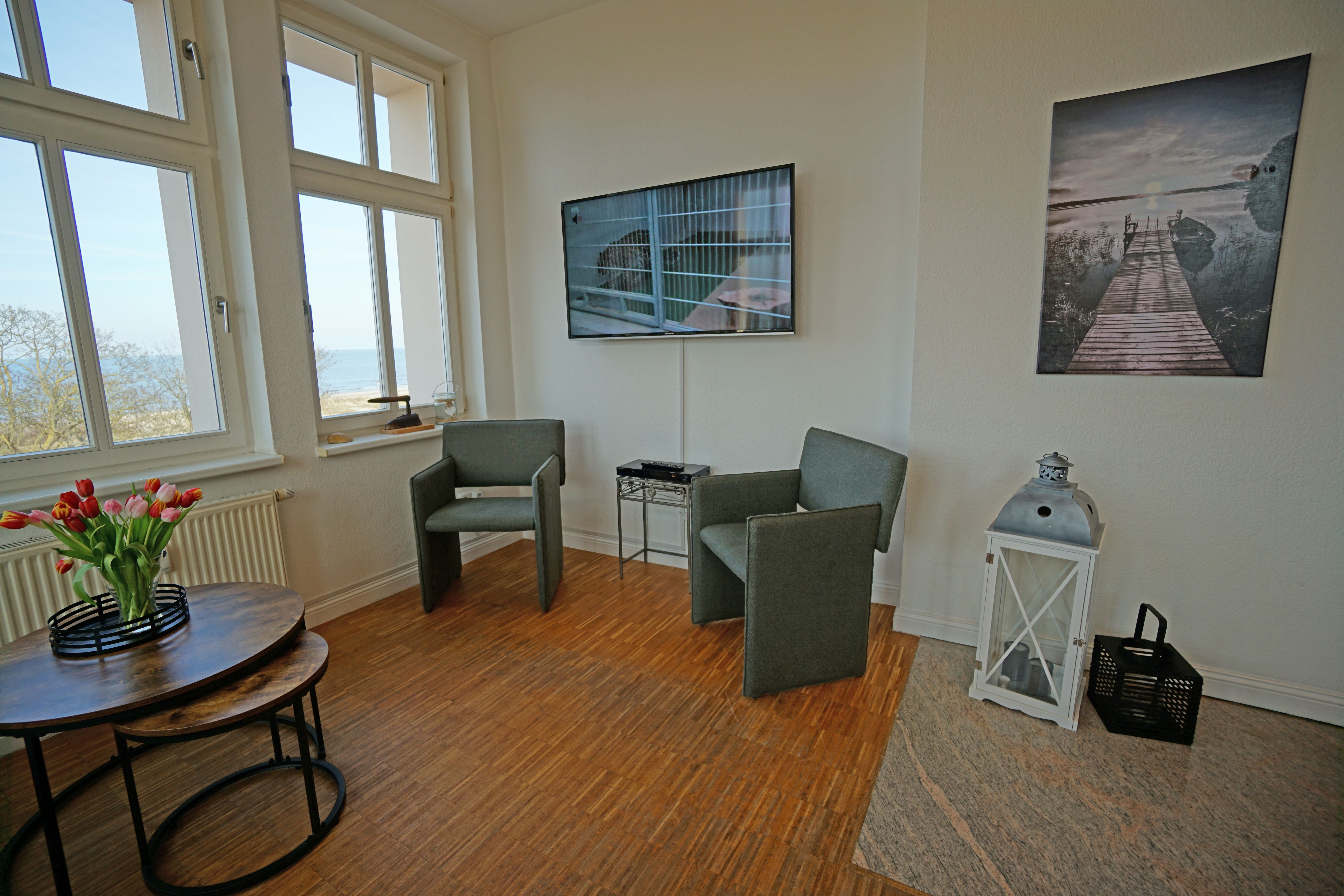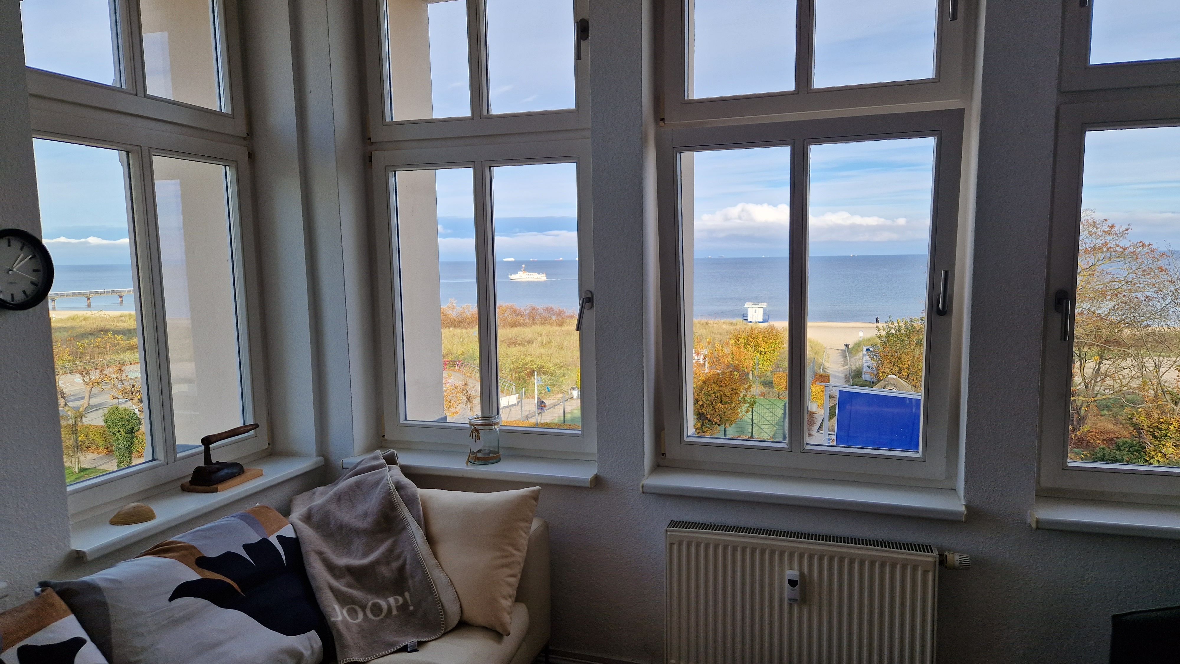 Aus der geräumigen 3-Zimmer-Nichtraucherwohnung in der zweiten Etage haben sie direkten Blick auf die Ahlbecker Seebrücke und das Meer. Handtuchpakete, Kinderreisebetten, und Hochstühle können kostenpflichtig ausgeliehen werden. Die in den Kaiserbädern fällige Kurtaxe ist bar vor Ort bei Anreise zu zahlen.