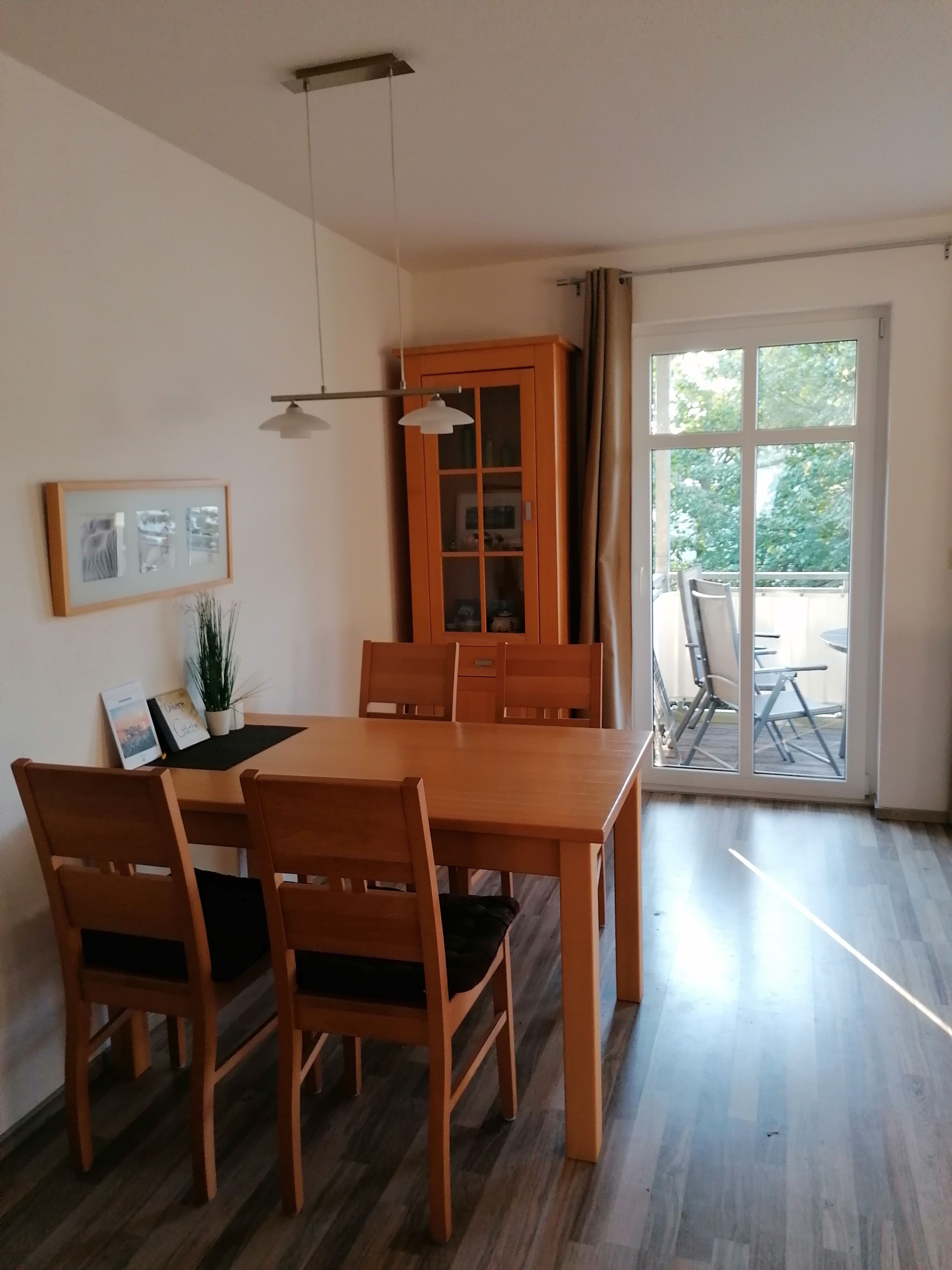 Diese 2 Raum Wohnung in der Nähe der Wilhelmstraße , der Flaniermeile von Sellin hebt sich durch einen Balkon und einer großen Terrasse hervor. Sie haben ein Schlaffzimmer mit Doppelbett und im Wohnzimmer eine Schlafcouch mit Esstisch für 4 Personen.