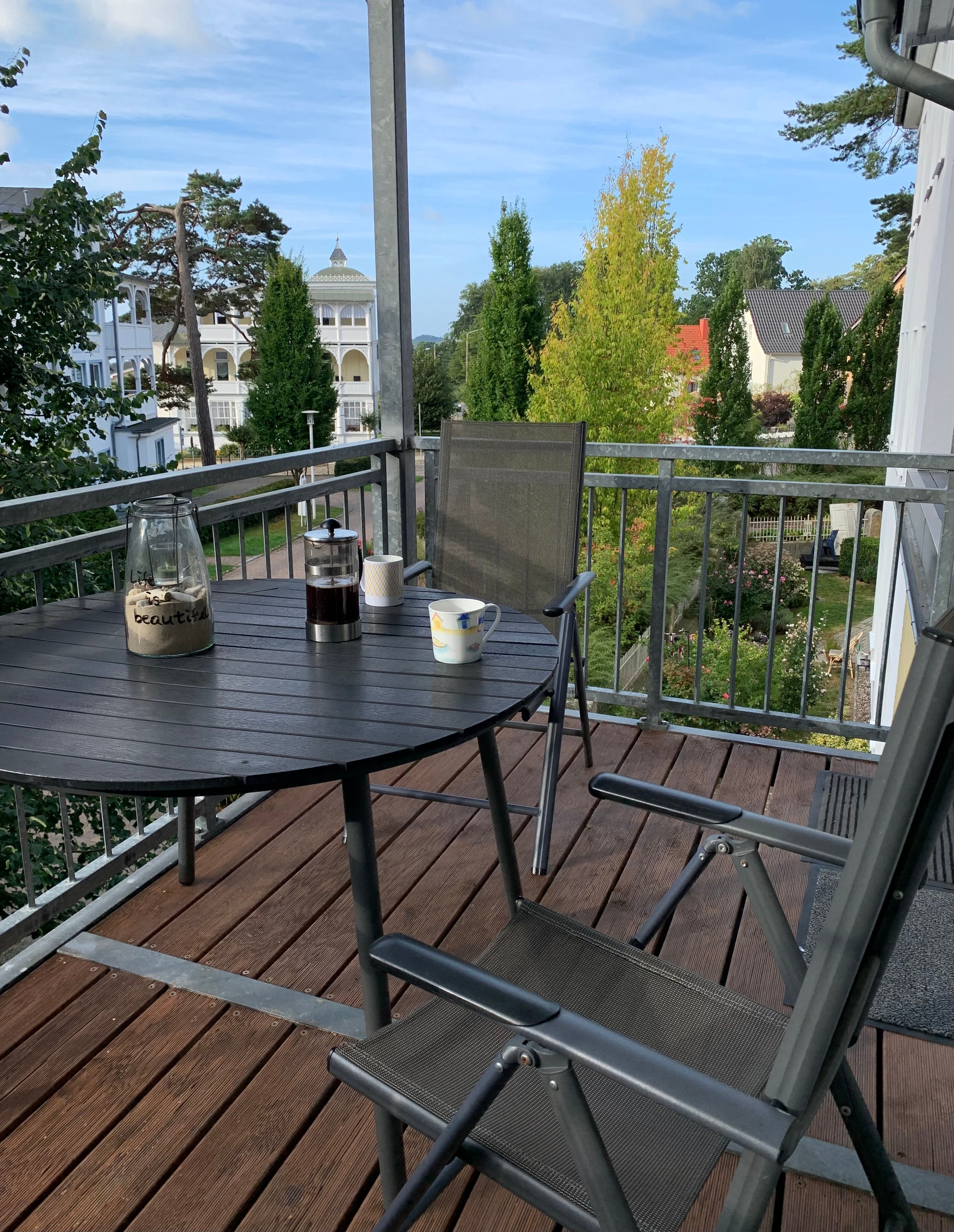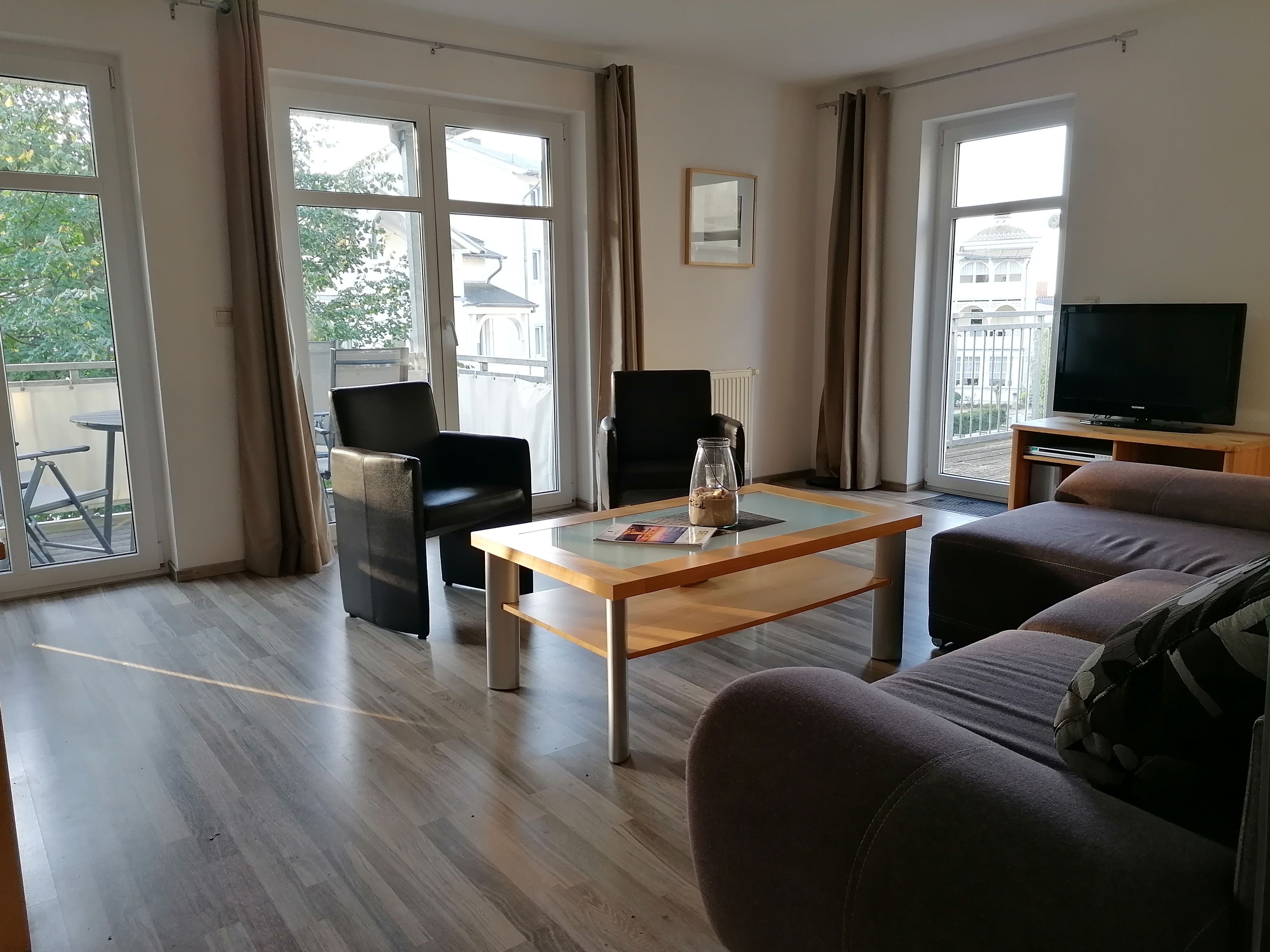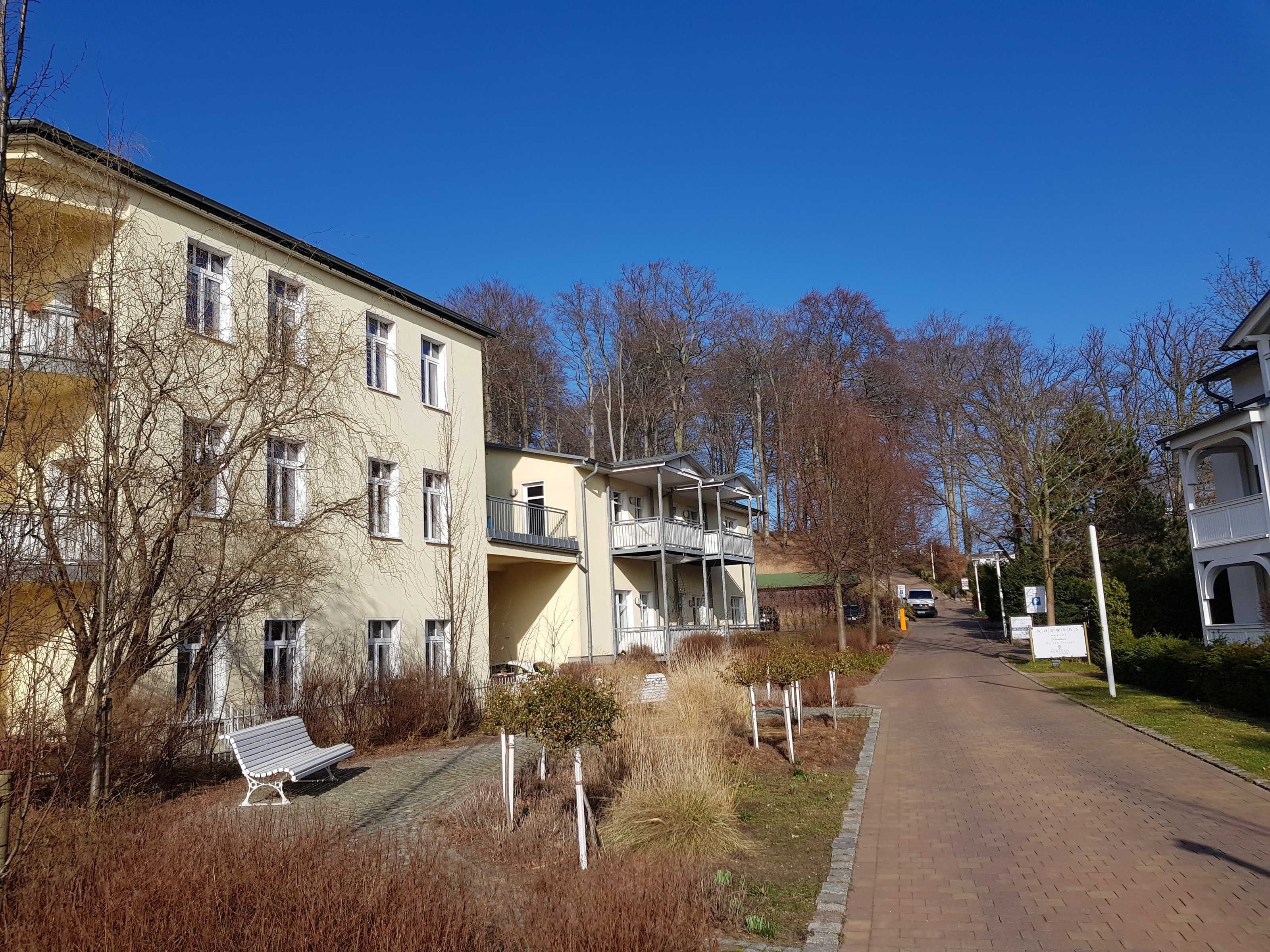 Die geräumige  2 Raum Wohnung mit Balkon und großer Dachterrasse unmittelbar am Kurpark von Sellin gelegen ist nur wenige Minuten zu Fuß  vom feinsandigen Ostseestrand entfernt. Von der ruhigen Nebenstraße sind Restaurants und Einkaufmöglichkeiten bequem zu erreichen. Der sonnige Balkon und die großzügige Dachterrasse laden zum Sonnenbaden ein. Die Wilhelmstraße mit Ihren Geschäften und Restaurants ist nur wenige Minuten von der Unterkunft entfernt.