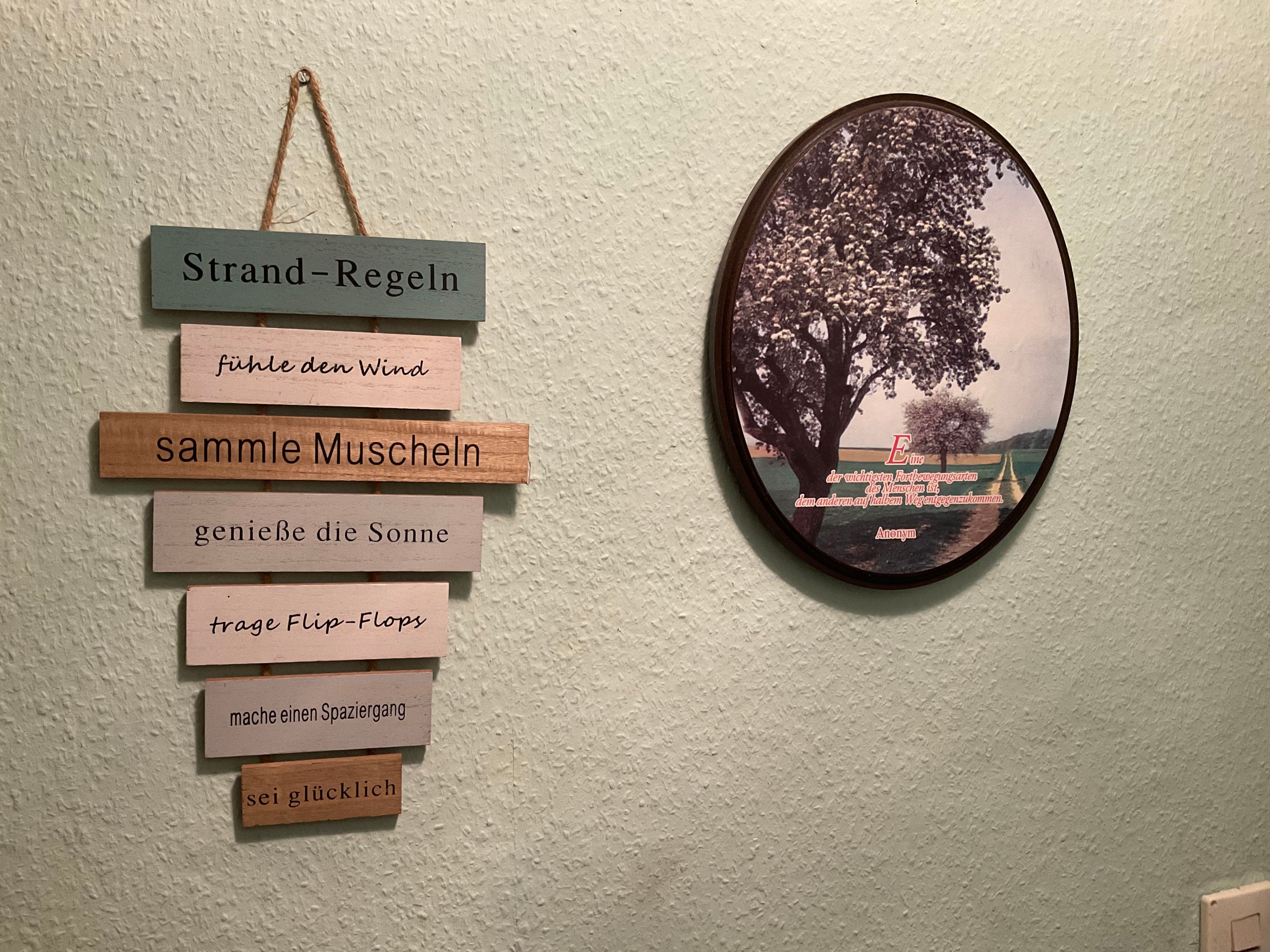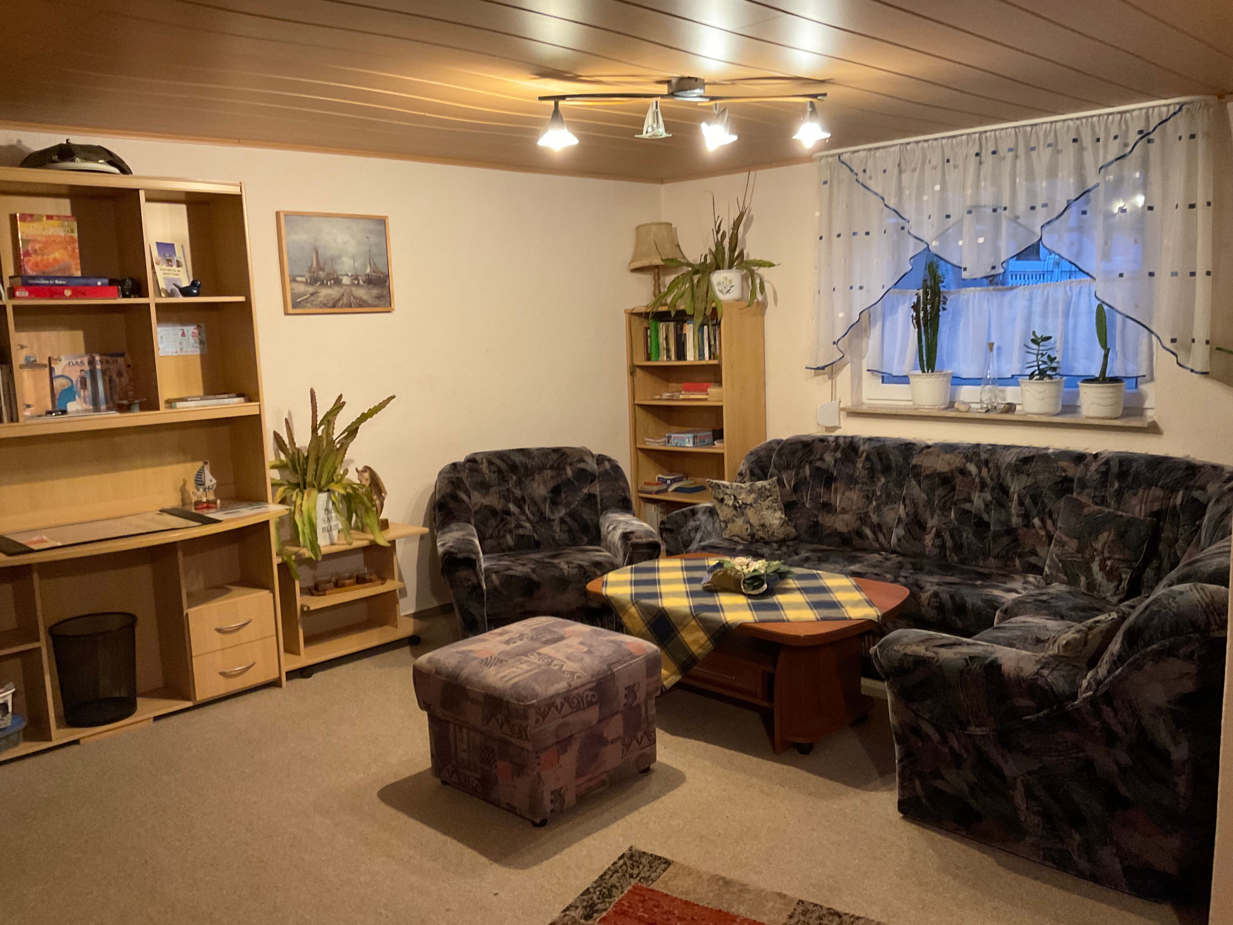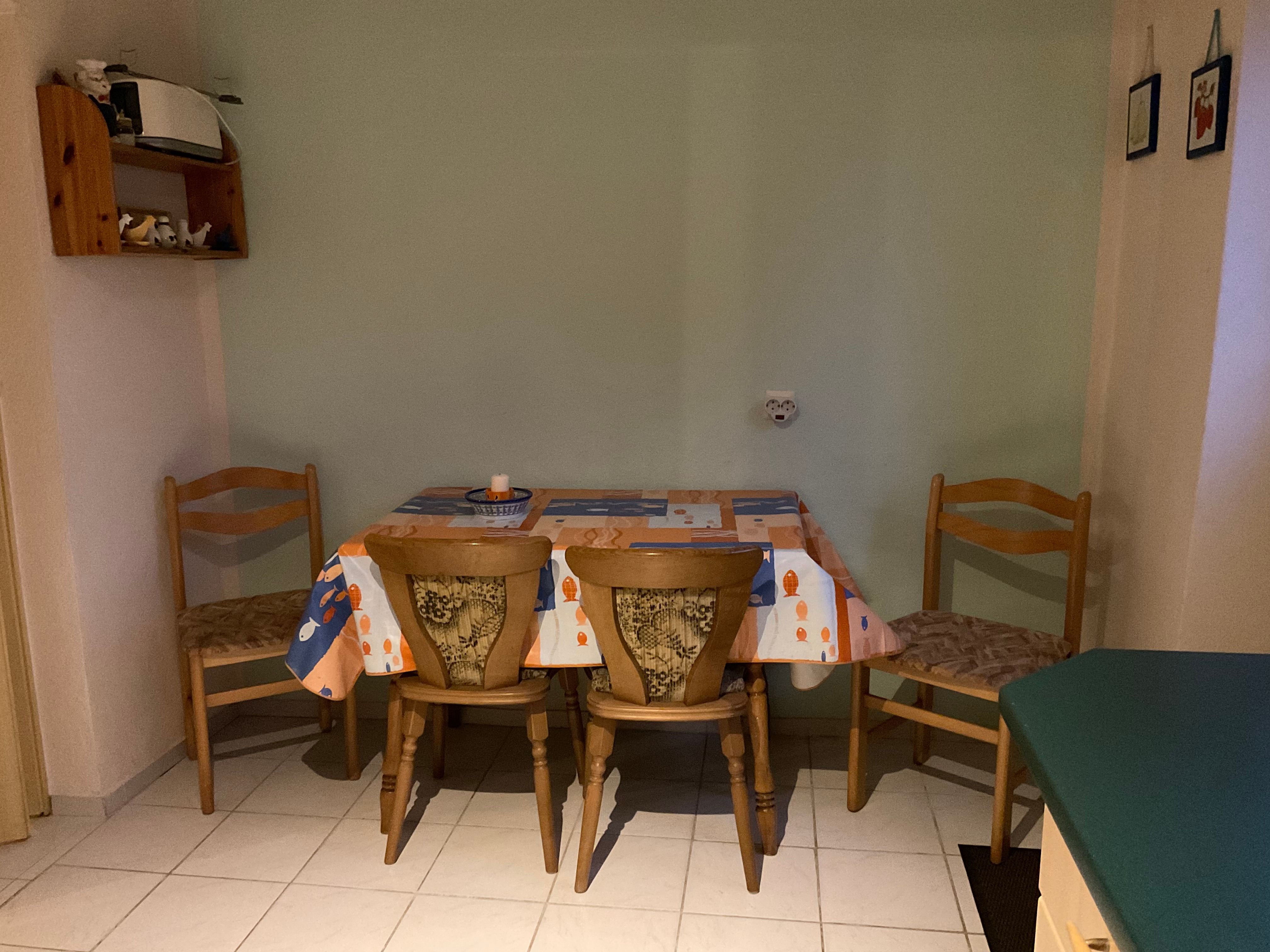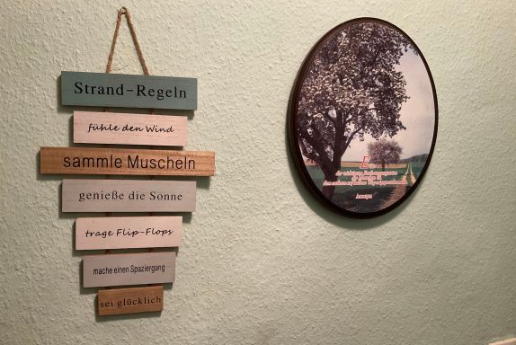 Die ca. 50m² goße Nichtraucherferienwohnung über zwei Etagen besteht aus Küche mit Microwelle, Backofen, Herd, Bad mit DU/WC, einem Wohnraum und einem über eine Wendeltreppe zu erreichenden Schlafraum mit einem Doppelbett und einer Doppelliege.