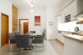 Die denkmalgeschützte Bädervilla beherbergt zwölf hochwertig eingerichtete 2 - 3-Zimmer-Wohnungen, einige mit Meerblick. Jede Einheit bietet einen Balkon oder eine Dachterrasse zum Entspannen und ist mit einer voll ausgestatteten Wohnküche zur Selbstversorgung ausgestattet. Alle Appartements verfügen über mindestens ein separates Schlafzimmer, Duschbad. Kostenfreies WLAN ist in fast allen Wohnungen vorhanden und teilweise kann eine Waschmaschine genutzt werden. Die Lage ist ideal: Der feinsandige Strand ist nur 50 Meter entfernt, während der Ortskern und die Seebrücke in ca. 100 Metern zu erreichen sind. In naher Umgebung befinden sich zahlreiche Restaurants, eine Eisdiele und ein fußläufig erreichbares Einkaufszentrum.