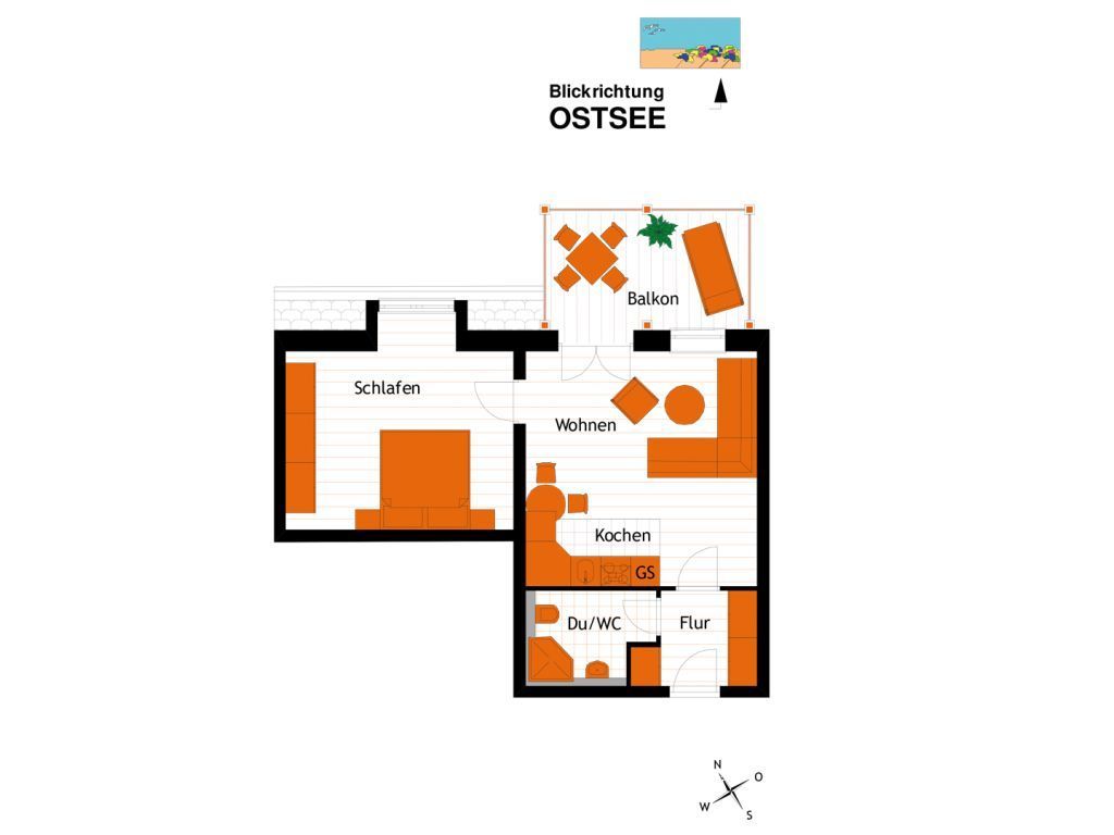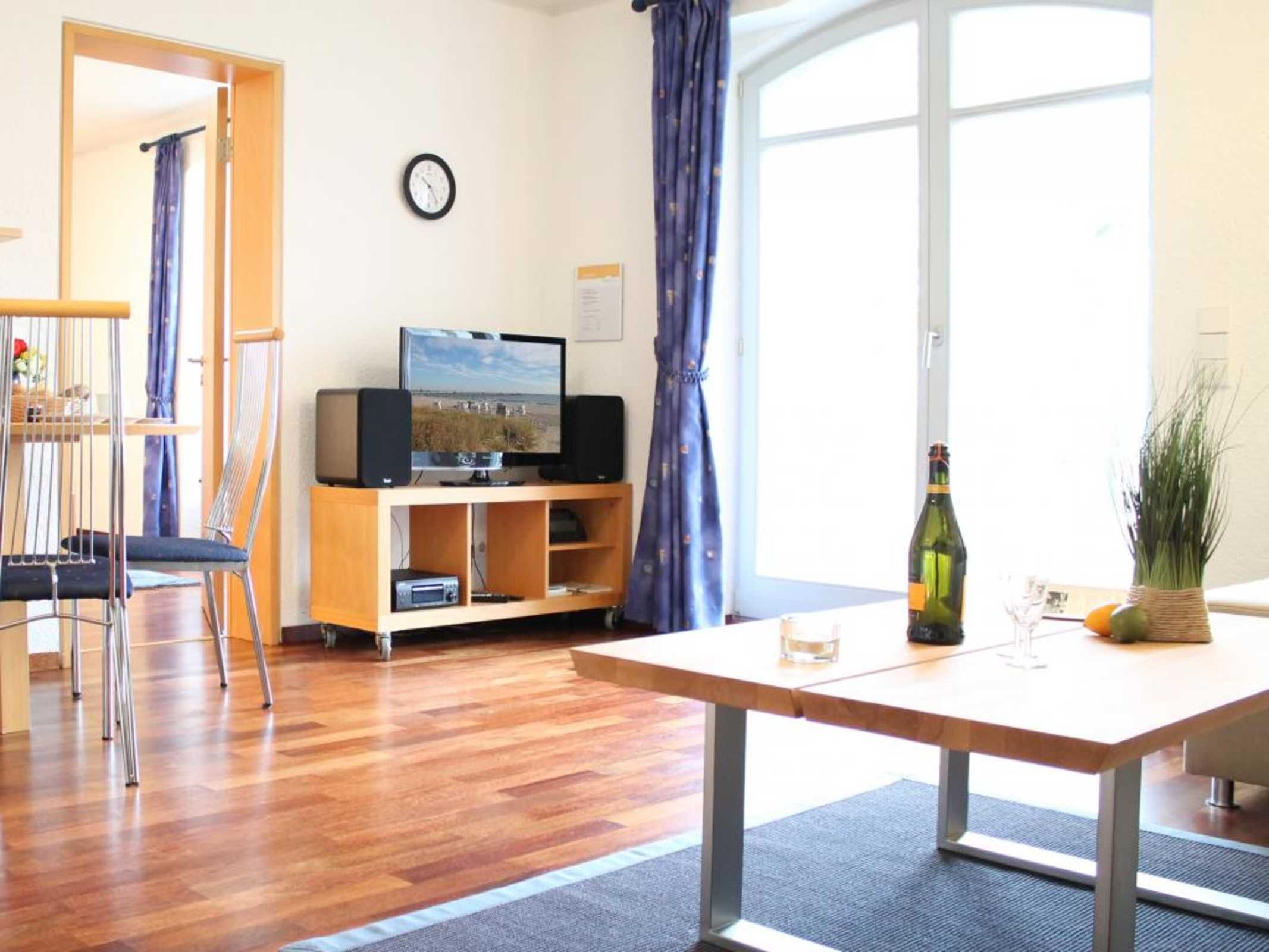 Das 2-Zimmer Appartement ist mit 4 Sternen zertifiziert, so dass die Betten bereits frisch für Sie bezogen sind und auch Handtücher bereit liegen. Die Wohneinheit liegt in der 1. Etage des Hauses. Mit einer großzügigen Wohnfläche von 55qm und einem separaten Schlafzimmer, bietet die Wohnung idealen Bedingungen für einen Urlaub mit 2 Personen. Im hochwertig möblierten Wohn-Essbereich mit Sofa, Fernseher, WLAN, Musikanlage, und Telefon, werden Sie sich bestimmt wohl fühlen. Die Wohnküche ist integriert und mit Herd, Backofen, Mikrowelle, Kühlschrank mit integr. Gefrierfach, Toaster, Wasserkocher und Kaffeemaschine ausgestattet. Somit ist eine bequeme Selbstversorgung während Ihres Aufenthaltes möglich. Ein kleiner Esstisch lädt zu gemeinsamen Mahlzeiten ein. Erholung finden Sie auf dem saisonal möblierten Meerblick Balkon in nord-ost Ausrichtung, wobei der Blick zu Ostsee durch laubtragende, wunderschöne alte Bäume eingeschränkt ist. Das separate Schlafzimmer ist mit Doppelbett und Kleiderschrank eingerichtet. Die Wohnung verfügt über ein Duschbad mit Waschtisch, Fön. Ein Kinderreisebett befindet sich in der Ferienwohnung. Im Untergeschoss steht eine Waschmaschine zur Nutzung bereit. Bitte beachten Sie, dass Haustiere und Rauchen nicht gestattet sind.