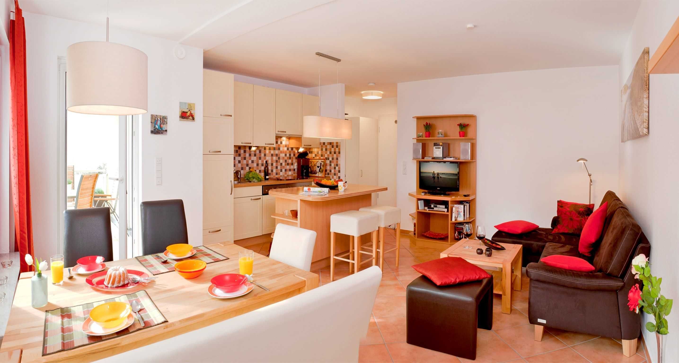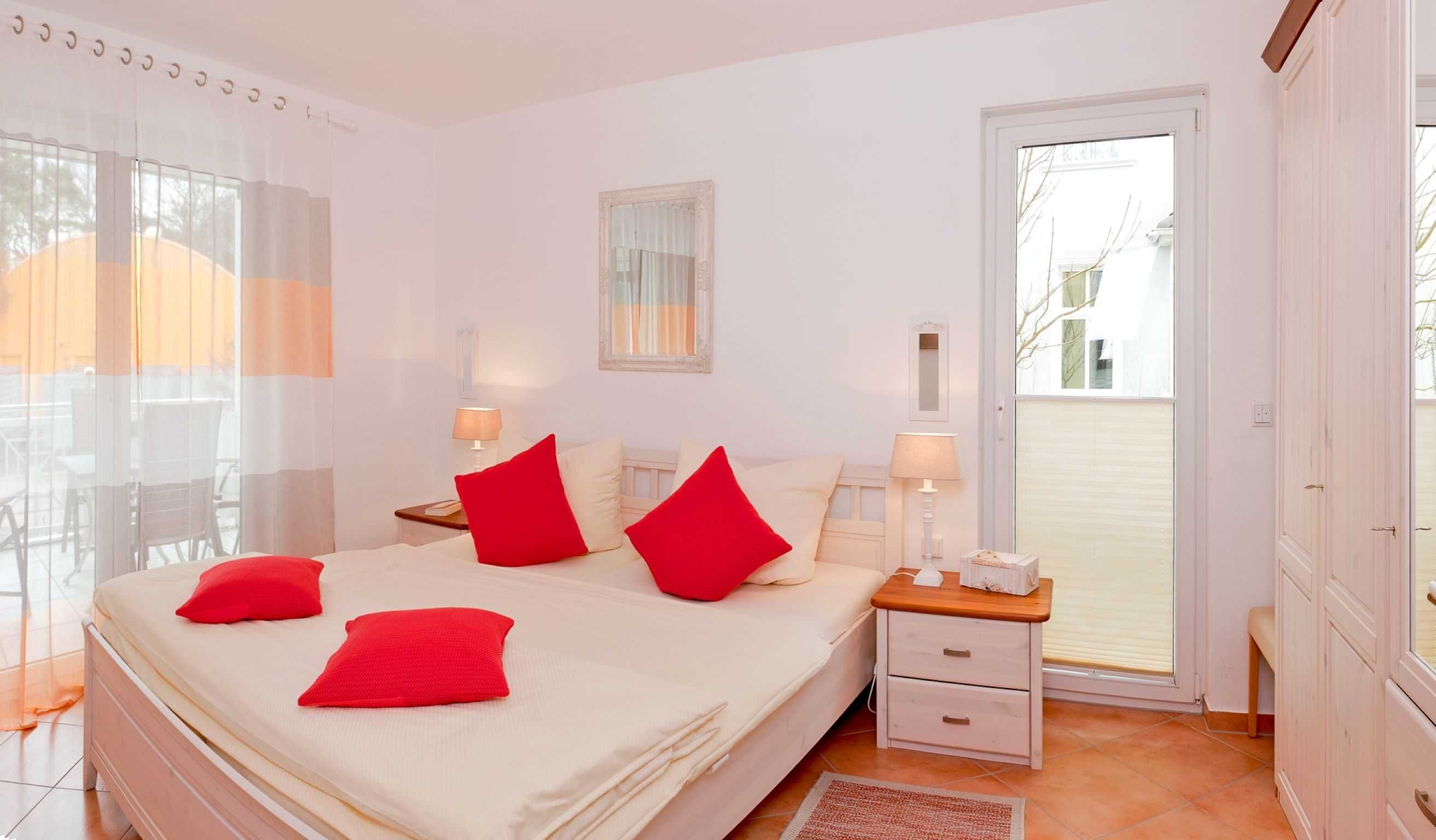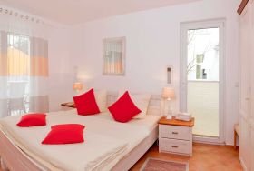 Das große gemütliche Schlafzimmer verfügt über ein Doppelbett (180x200cm) und einen geräumigen Schrank. Durch Fernseher, DVD-Player und Stereoanlage bietet der komfortable Wohnbereich einen perfekten Ort um die Zeit in der Wohnung auszunutzen. Die komplett eingerichtete Wohnküche mit Geschirrspüler und Sitztheke ermöglicht zudem eine Selbstversorgung während des Urlaubs. Das großzügige Badezimmer besitzt Dusche und WC. Auf dem großen, möblierten sowie überdachten Balkon können Sie bequem zusammensitzen. Natürlich stellen wir Ihnen einen PKW-Parkplatz zur Verfügung. WLAN ist vorhanden. Waschmaschine und Trockner können Sie gegen Entgelt verwenden.