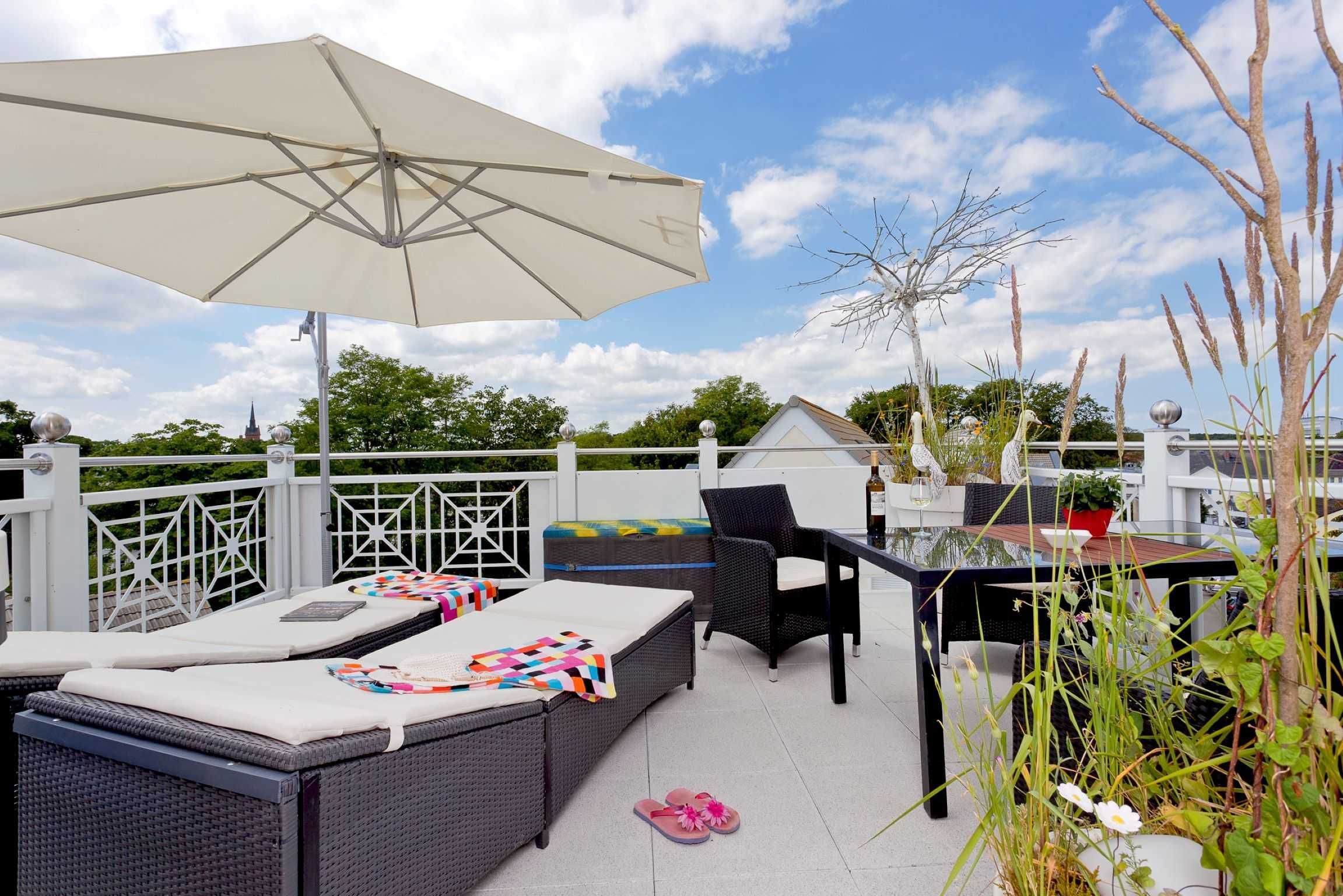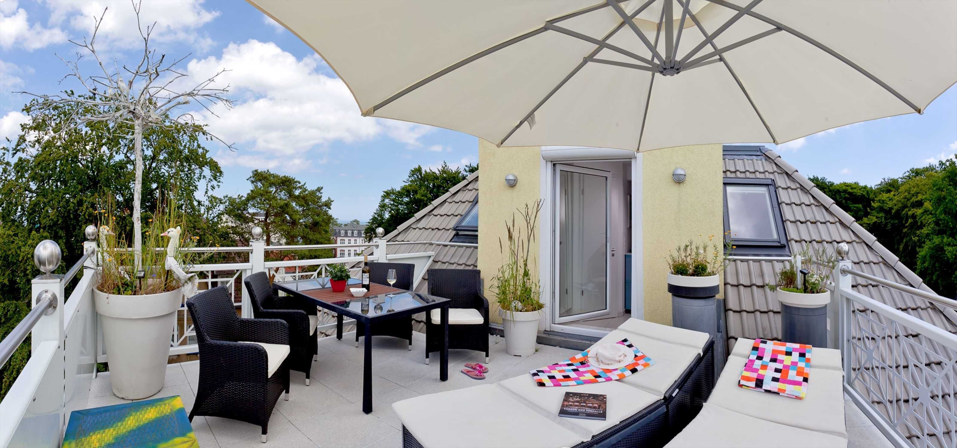 Durch die hohe Dachgeschosslage und die drei Balkone haben Sie einen hervorragenden Seeblick. Der Wohnbereich hat einen großzügigen Grundriss mit einer offenen sowie komplett ausgestatteten Küche durch welche Sie sich kulinarisch frei entfalten können. Auf zwei möblierten Dachbalkonen können Sie das schöne Wetter auch direkt an der Wohnung nutzen. Die gemütliche Sitzlandschaft mit Flachbildfernseher, DVD-Player und Stereoanlage bietet zudem einen schönen Raum um am Abend oder am Tag auch vor Ort gemeinsam Zeit zu verbringen. Zudem ist dort ein modernes Bad mit einer großen Dusche und einem WC. In der unteren Ebene befinden sich zwei gemütlich eingerichtete Schlafzimmer für jeweils zwei Personen. In der oberen Etage befinden sich des Weiteren ein Schlafraum und ein großzügiges Badezimmer mit Dusche, Badewanne, Doppelwaschtisch, WC und Bidet. Ebenso befindet sich dort eine Dachterrasse mit 2 Komfortliegen und einem Tisch mit weiteren Sitzmöglichkeiten. WLAN ist vorhanden. Ihnen wird zudem selbstverständlich ein eigener Tiefgaragenstellplatz zur Verfügung gestellt. Waschmaschine und Trockner können Sie gegen Entgelt verwenden.