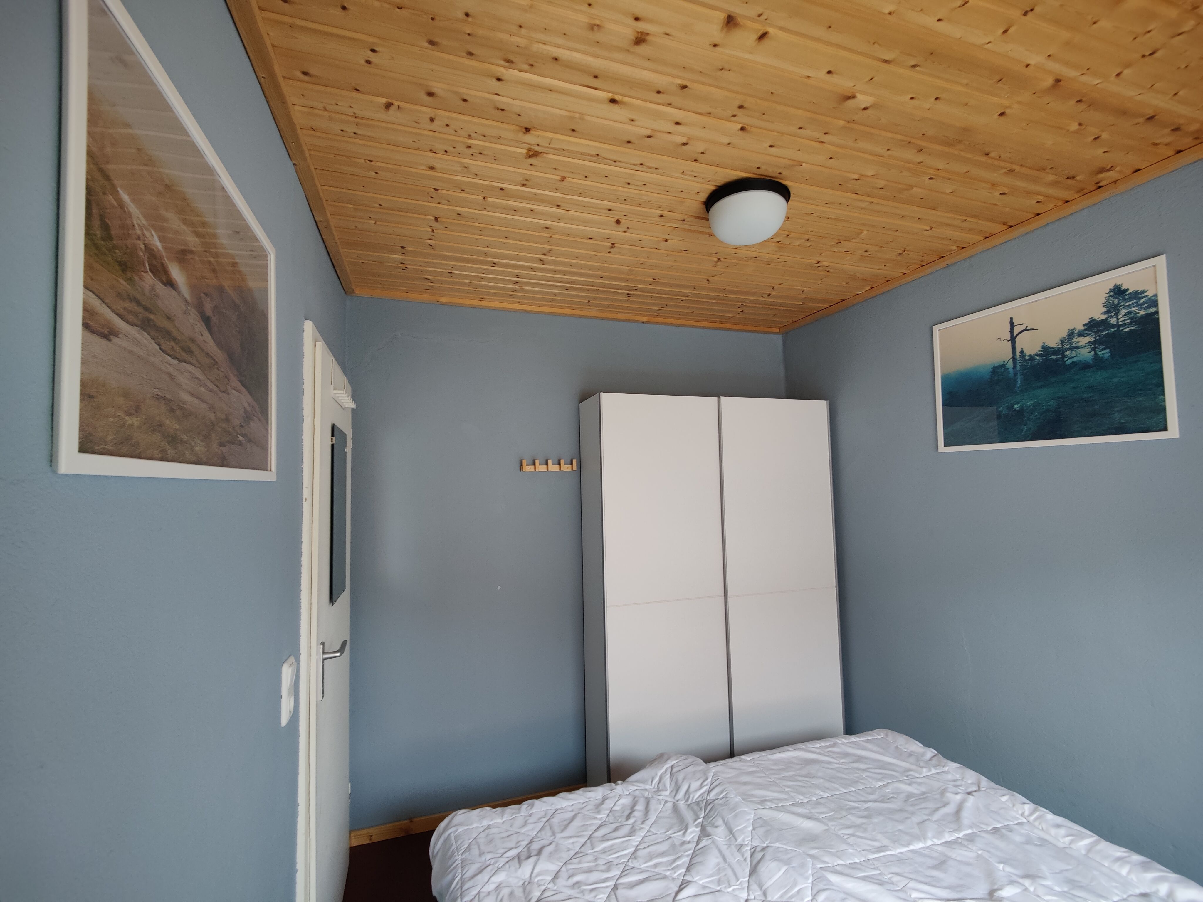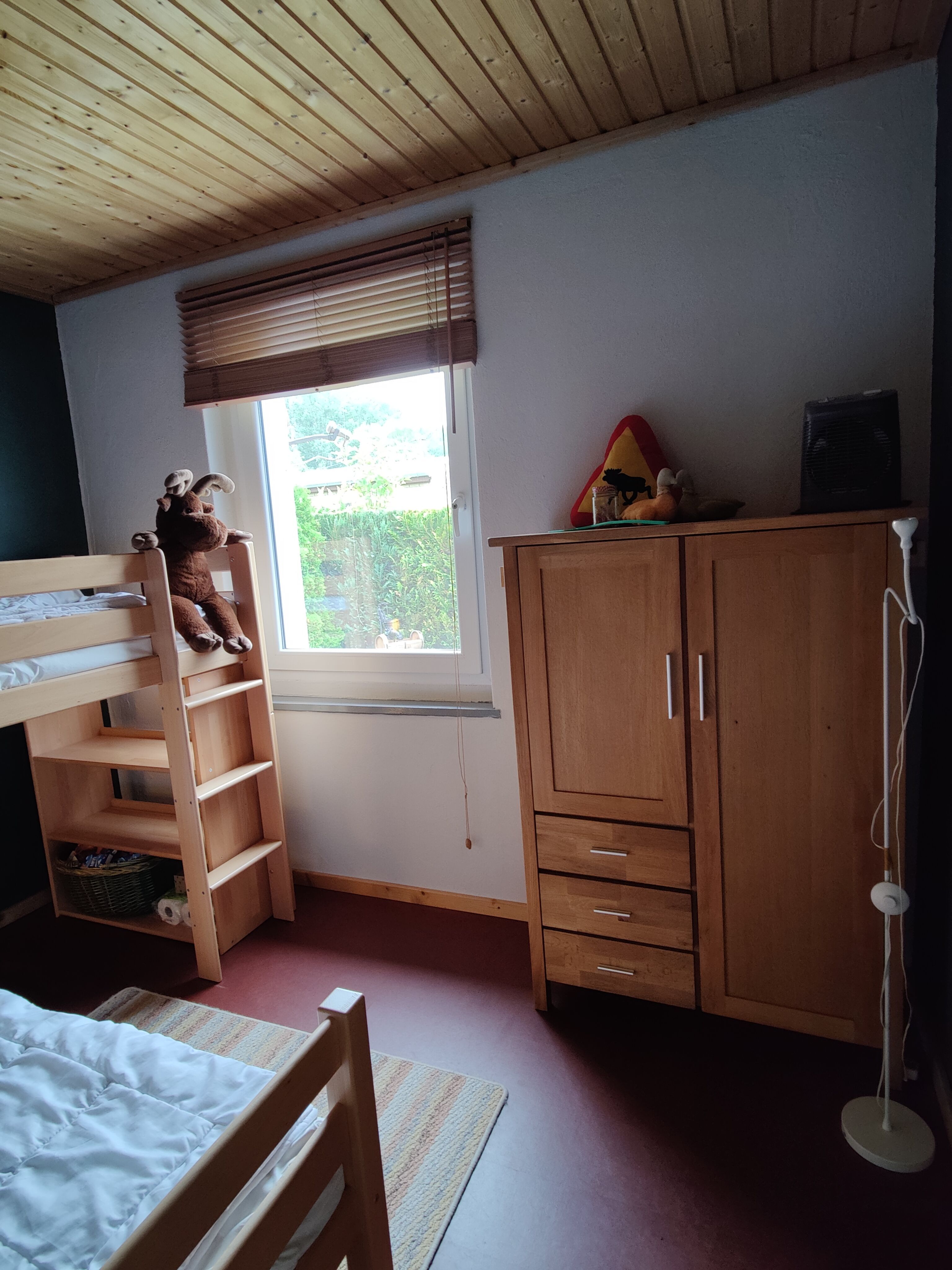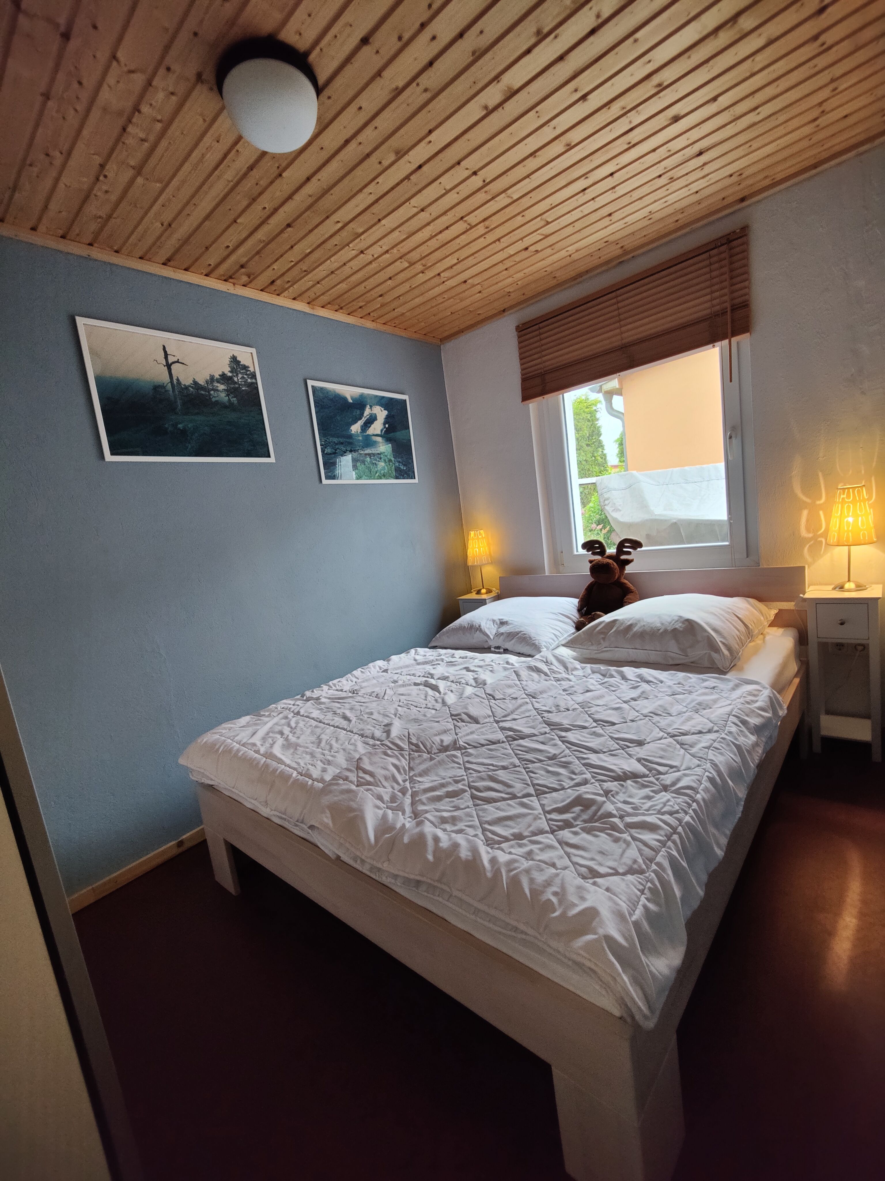 • 2 Schlafräume (  ein Bett mit einer Breite von 1,40 m für welches man ein großes Laken benötigt und ein Bett mit einer Breite von 1,60 m. Diese ist mit zwei Matratzen in 0,80 m Breite bestückt, so dass man dafür zwei normale Laken braucht),