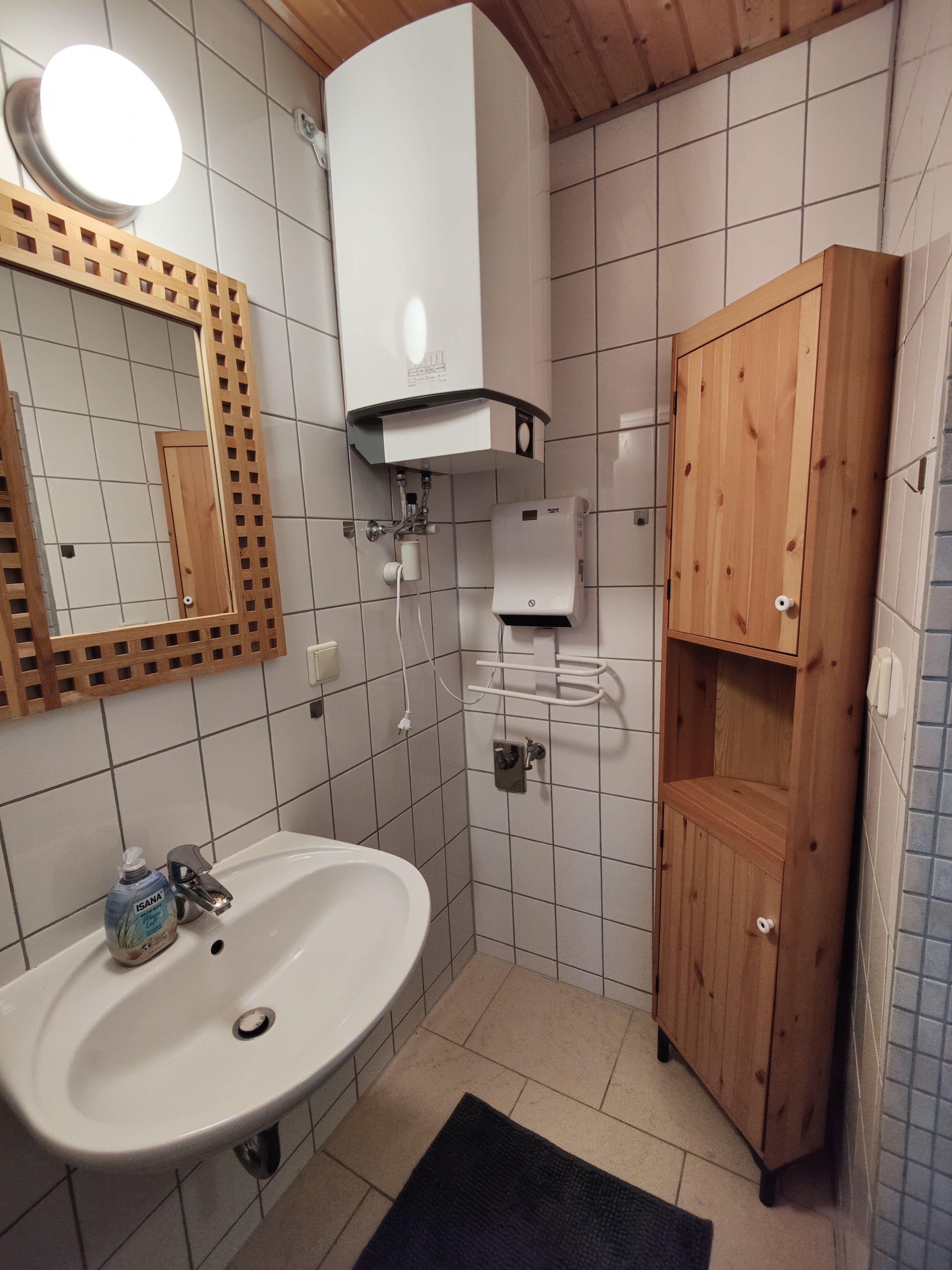 Im Schuppen stehen Fahrräder (für kurze Touren innerorts ausreichend), Grill und Feuerschale (ohne Zubehör) zur Nutzung bereit. Im Hauswirtschaftsraum befinden sich zwei Sonnenliegen, ein Liegestuhl und vier Terrassenstühle. Auch der Sicherungskasten ist hier zu finden.