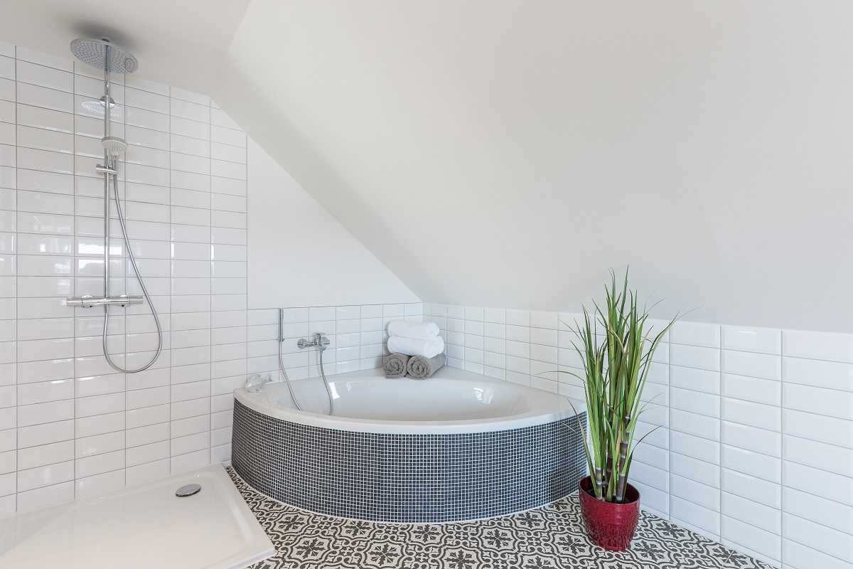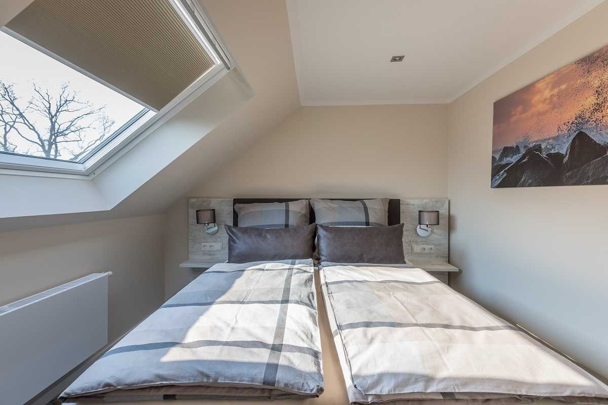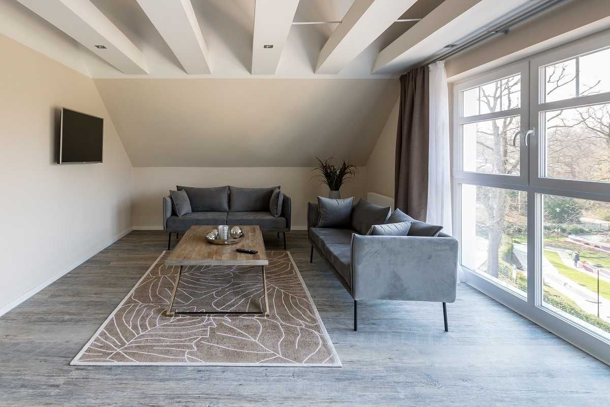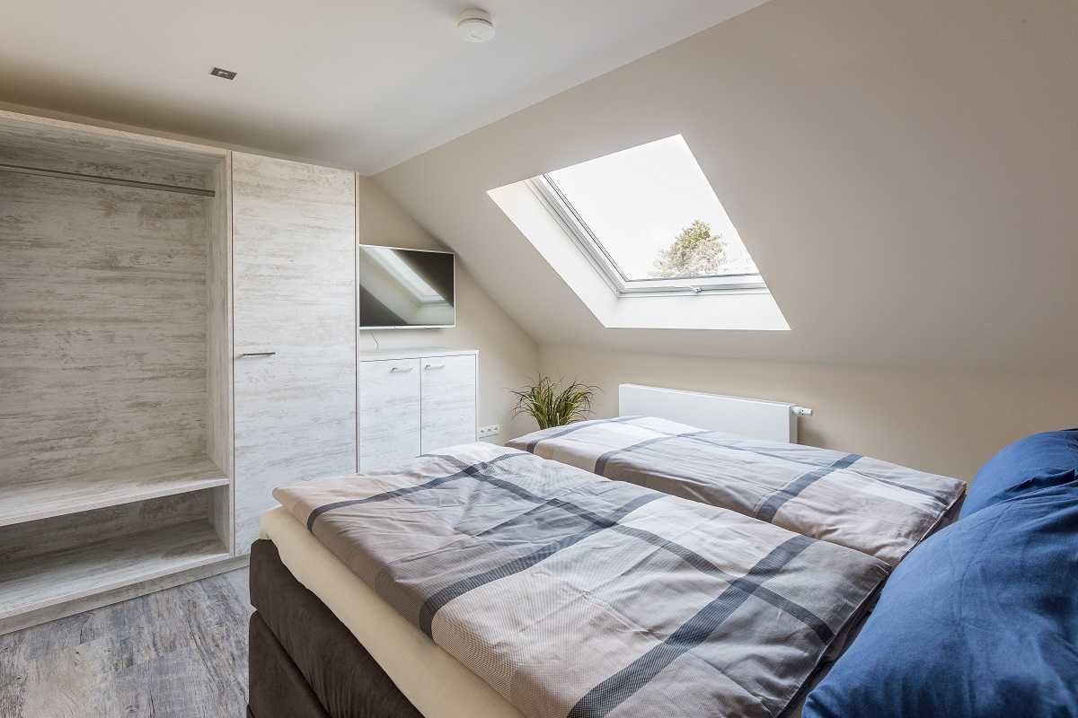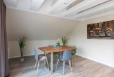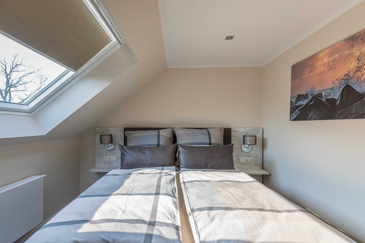 Sie schlafen in traumhaften Boxspringbetten – und für den entspannten Luxus tagsüber stehen zwei stilvolle Sofas und ein gemütlicher Esstisch zur Verfügung. Kinder dürfen sich im Spitzboden austoben oder vielleicht eine Runde Playstation spielen.