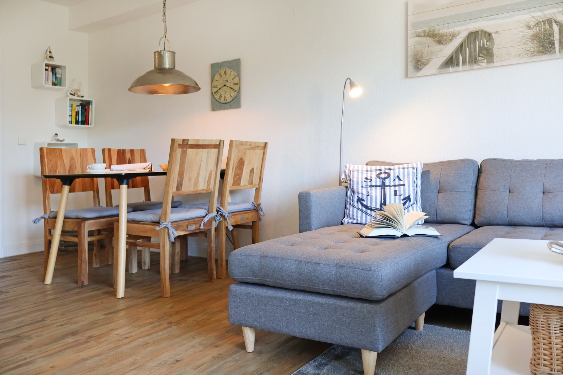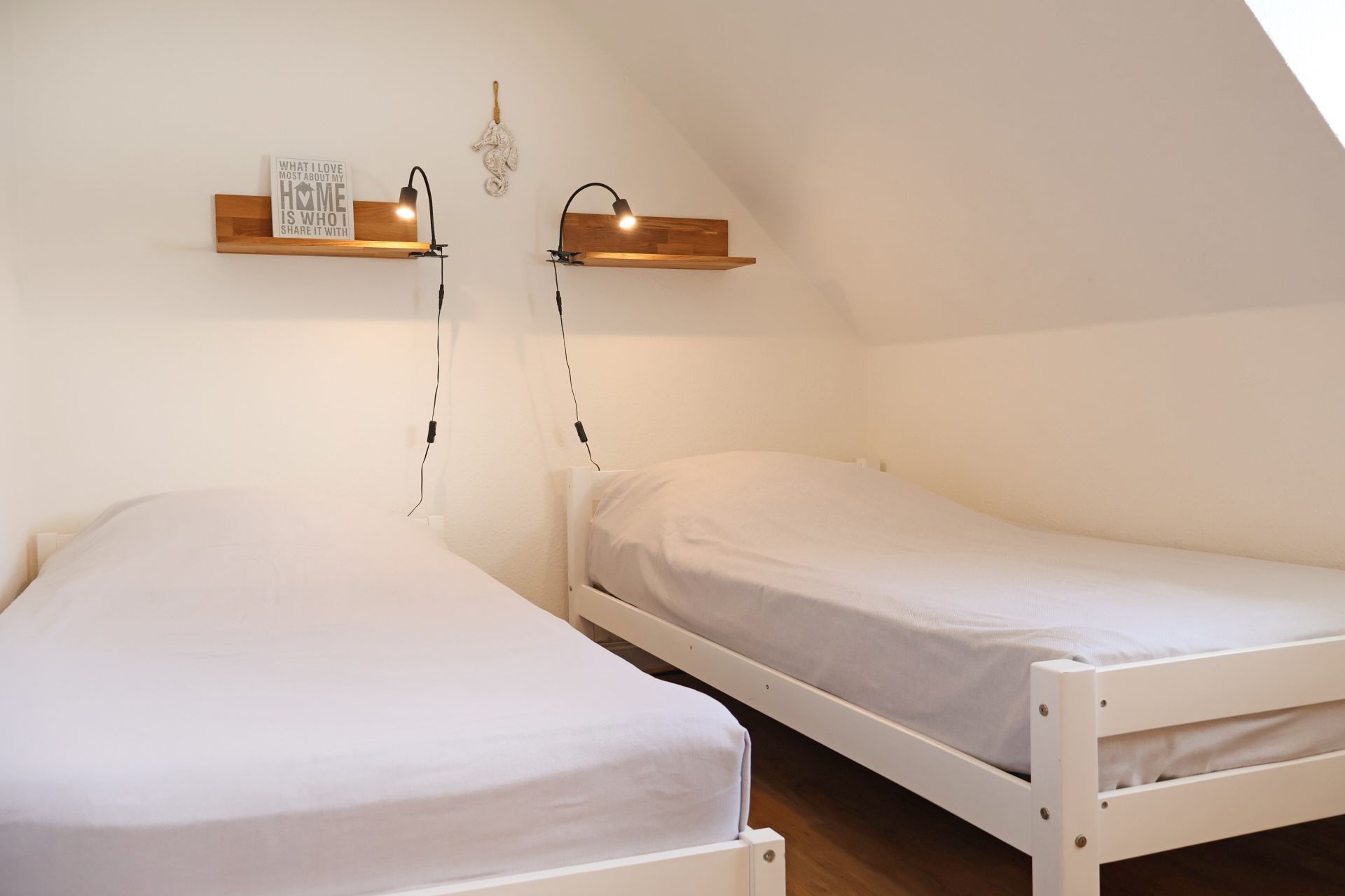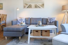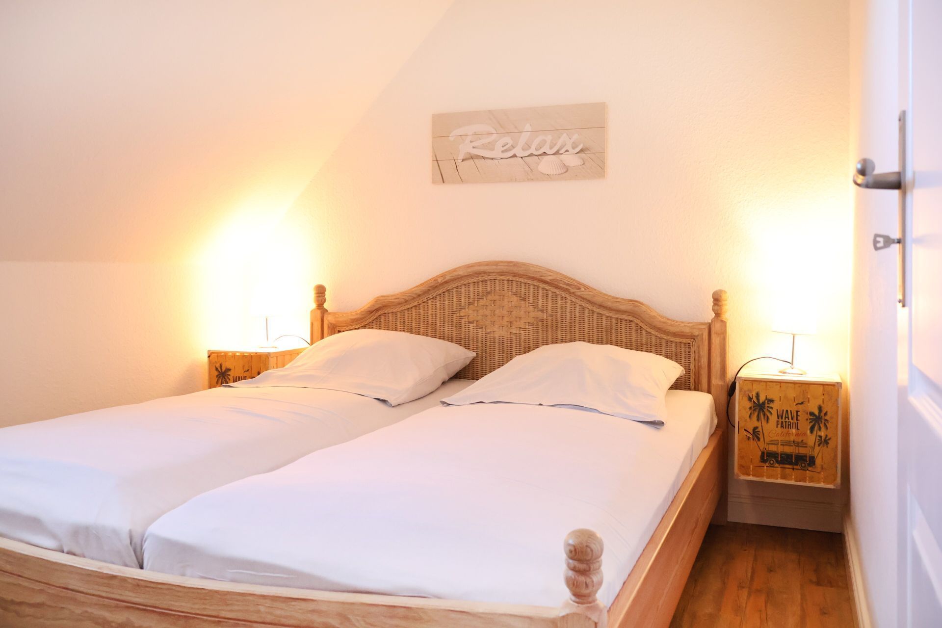 Hell und freundlich empfängt das liebevoll eingerichtete Reihenhaus ?Stranddüne? max. 4 Gäste auf einer großzügigen Wohnfläche von 60qm. An den komfortabel eingerichteten Wohn-Essbereich lehnt integrierte, gut ausgestattete Küchenzeile mit 4 Platten Ceranherd, Backofen, Geschirrspüler, Mikrowelle, Kaffeemaschine, Toaster usw. Vom Küchenbereich blicken Sie auf einen kleinen Naturteich. Für Unterhaltung sorgen ein Flat-TV, Musikanlage mit MP3-Funktion. Ebenso befindet sich im Wohnbereich eine gemütliche Sitzcouch. Entspannung bietet auch die sonnige Terrasse mit Gartennutzung. Das Ferienhaus ist im Erdgeschoß mit einer Fußbodenheizung ausgestattet. Das gesamte Haus überzeugt zudem mit einem Holzoptik Design- Fußboden. Im Obergeschoss des Hauses verwöhnt das hell geflieste Duschbad mit Wellnessduschbrause. In beiden Schlafzimmern 1x Doppelbett und 1x 2 Einzelbetten werden Sie auf Grund der ruhigen Wohnlage erholsam schlafen. Kostenfrei parken Sie Ihren PKW auf dem zugehörigen Grundstück. Gerne können im Kellergeschoss Gefrierschrank kostenfrei sowie Waschmaschine und Wäschetrockner gegen geringe Gebühr genutzt werden. Herzlich willkommen in diesem familienfreundlichen Nichtraucher Ferienhaus. Hunde sind herzlich willkommen und werden mit 8,00?/Tag berechnet.