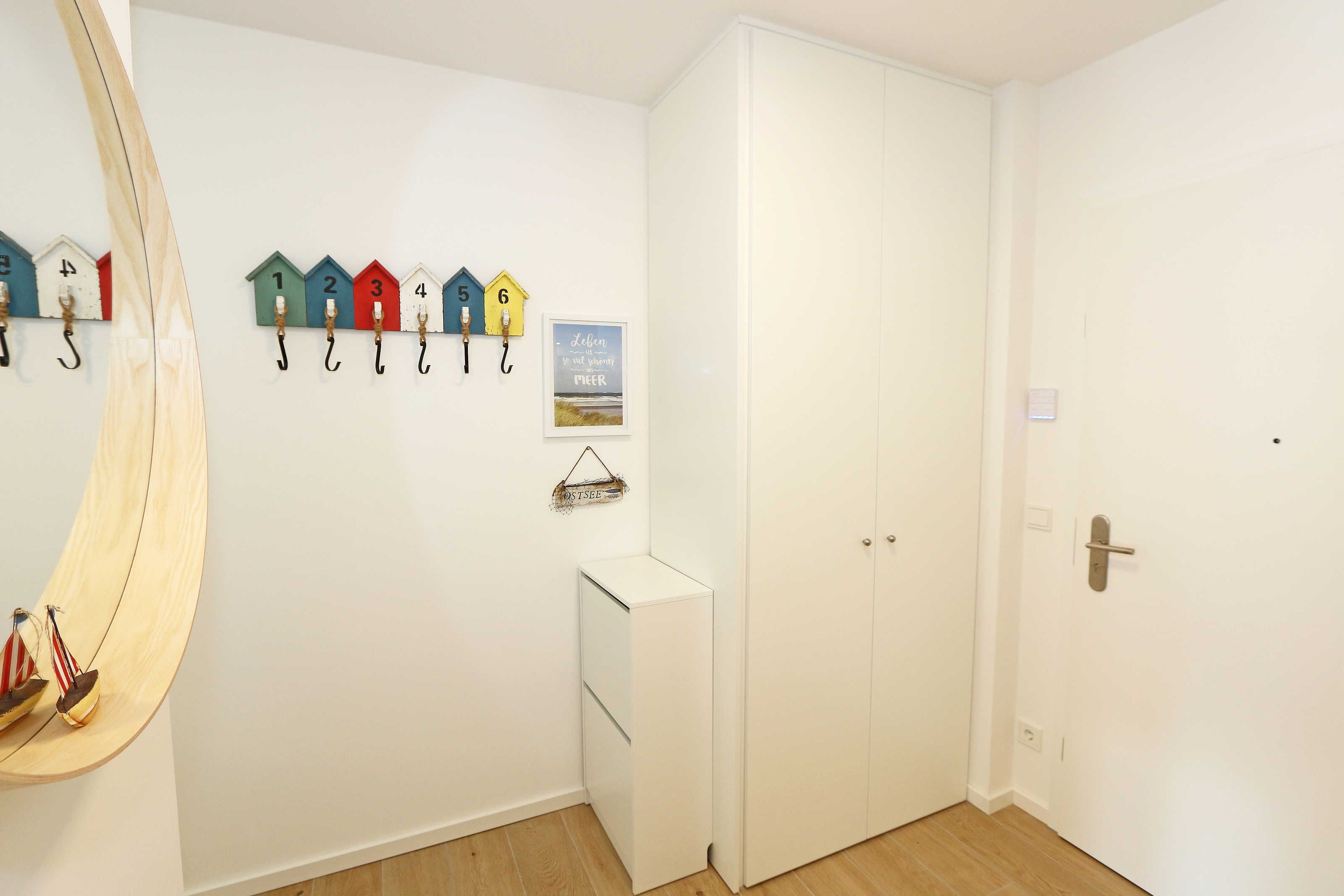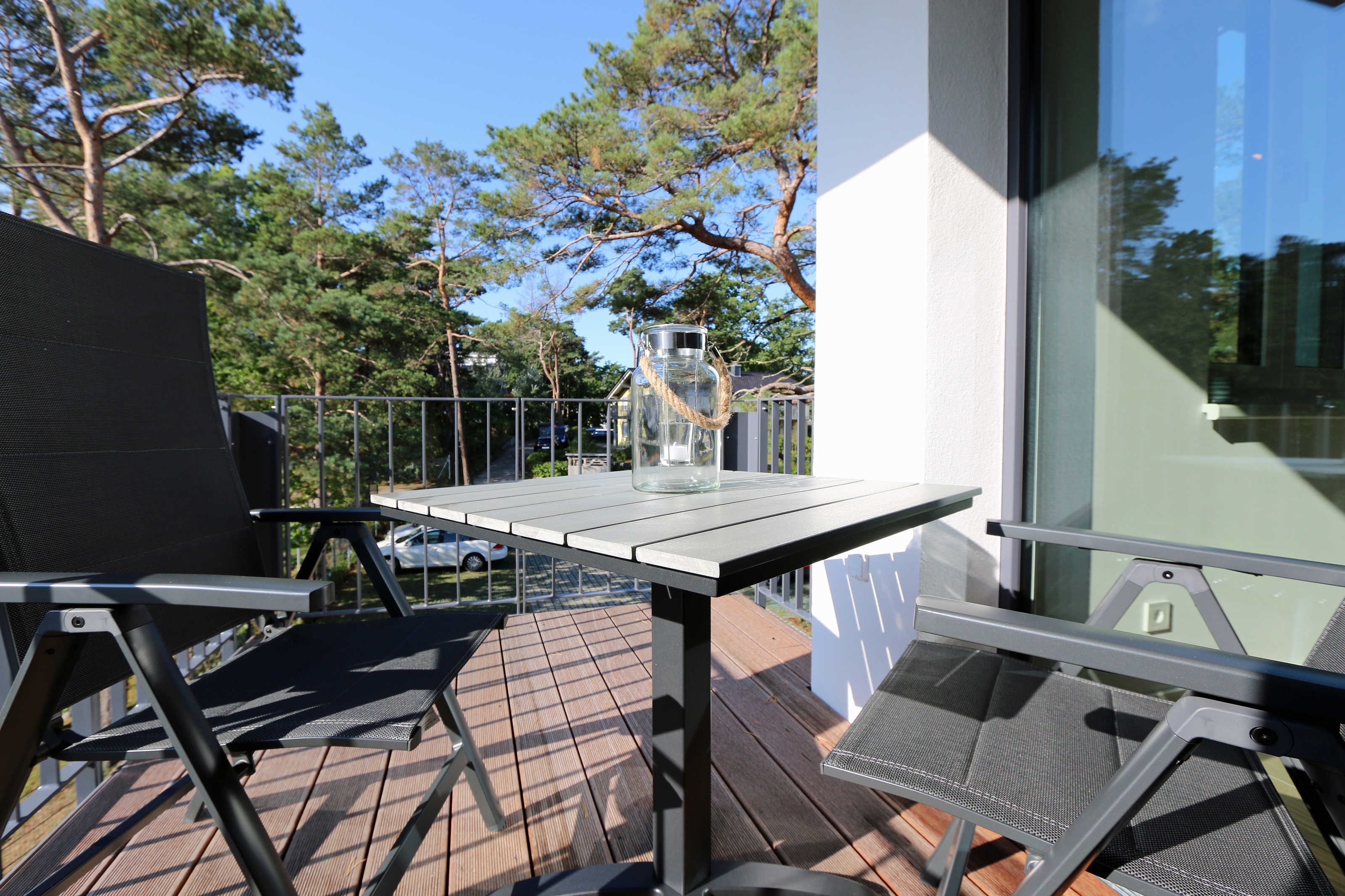 Die lichtdurchflutete Zwei-Raum-Komfort-Wohnung befindet sich mit Ihren 50 m² in der 2.Etage der Villa Strandläufer und kann bequem mit dem Fahrstuhl erreicht werden. Die moderne und freundliche Nichtraucherferienwohnung „Sonnenschein“ ist für max. 2 Personen ausgelegt. Im Wohnbereich befindet sich eine gemütliche Eckcouch mit Couchtisch, einen Sessel sowie einer Vitrine. Zum technischen Bereich gehören ein Smart-TV mit integriertem Radio, USB-Anschluss und Bluetooth sowie ein WLAN-Verbindung. Auch eine kleine Auswahl an Gesellschaftsspielen und an Literatur steht für Sie bereit. Der Küchenbereich schließt sich hier mit der modern und zweckmäßig ausgestatteten Küchenzeile an. Zur hochwertigen Ausstattung gehören ein Geschirrspüler, autarkes Elektro-Kochfeld mit 4 Zonenceranfeld, Spüle, Kühlschrank mit Eisfach, Kompaktbackofen mit Mikrowelle, Einbaukühlschrank, Dunstabzugshaube, Wasserkocher, Toaster, Kaffeemaschine mit Thermoskanne, Pad-Kaffeemaschine (Tassimo) sowie ein Essplatz mit Radio. Vom Wohn- und Essbereich haben Sie einen entspannten Ausblick auf die Kiefernbestände wo Sie auf dem bestuhlten Balkon (ideal mit Süd/West Ausrichtung) die Sonne wunderbar genießen bzw. den Tag gemütlich beim Sonnenuntergang ausklingen lassen können. Das gemütliche Schlafzimmer verfügt über ein Doppelbett (1,80m x 2,00m), verstellbare Lattenroste, Nachttischablagen, Smart-TV mit integriertem Radio, USB-Anschluss, Bluetooth und Kleiderschrank mit Spiegelfront. Für einen ruhigen und entspannten Schlaf sorgen entsprechende Verdunklungsplissee´s sowie Insektenschutzgitter, die auch im Wohn- und Essbereich vorhanden sind. Das Bad wird durch eine ebenerdige Regendusche, Waschtisch, WC, Spiegel, Fön und einem Handtuchtrockner abgerundet. Zusätzlich verfügt die Wohnung über ein separates Gäste-WC und einen kleinen Abstellraum im Eingangsbereich mit diversen Reinigungsutensilien, ein Bügelbrett und ein Bügeleisen. Zu dem Villen-Ensembles gehören ein Wellnessbereich mit einer Gemeinschaftssauna, ein Waschraum mit Waschmaschinen und Trocknern, die gegen Gebühr bei Bedarf gern von Ihnen genutzt werden können. Haustiere sind nicht erlaubt. Ein Stellplatz (Nr.06/Sonnenschein) in der Tiefgarage (Einfahrtshöhe 2,00m) ist für Sie inklusive. Die Erstausstattung eines Wäschepaketes (komplette Bettwäsche, 1 Duschhandtuch, 2 kleine Handtücher) können Sie bis 14 Tage vor Anreise gegen einen Aufpreis dazu buchen oder durch eigene ergänzen. Ab 2 gebuchten Paketen erhalten Sie einmalig 1 Geschirrhandtuch und 1 Duschvorleger hinzu. Wir würden uns freuen, Sie in der Ferienwohnung „Sonnenschein“ in der Villa Standläufer begrüßen zu dürfen.