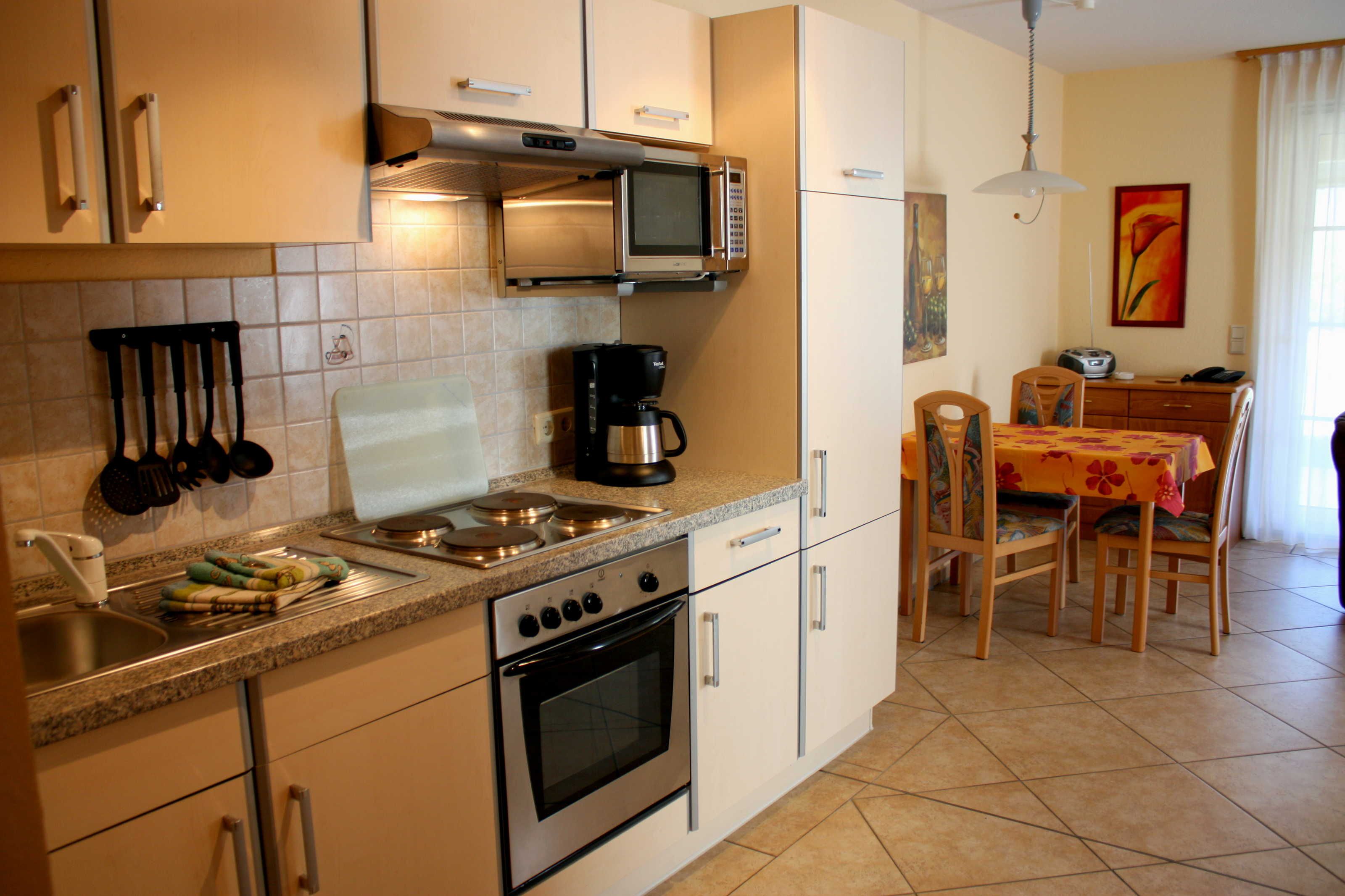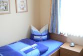 Die schöne und modern eingerichtete 3-Zimmerwohnung Nr. 12 befindet sich im Erdgeschoss des Hauses und verfügt über eine große überdachte Terrasse, die Sie zum Frühstücken nutzen können um so Energie für einen tollen Strand- oder erlebnisreichen Ausflugstag zu tanken. Die Nichtraucherwohnung verfügt über eine Größe von ca. 50 qm und ist mit bis zu 3 Personen belegbar. Die helle Wohnung verfügt über einen vorgelagerten Flur mit einer Garderobe, einem gemütlichen Wohnbereich mit Wohnküche sowie einen Essplatz, zwei Schlafzimmer und ein Tageslichtbad. Im Wohnbereich erwartet Sie eine bequeme Sitzecke. Zudem gelangen Sie vom Wohnzimmer aus auf die möblierte Terrasse. Die technische Einrichtung umfasst einen Flachbildfernseher, ein Radio mit CD-Player sowie einen gebührenfreien WLAN-Zugang. In der ausgestatteten Küchenzeile erwartet Sie unter anderem ein Backofen, Mikrowelle, 4 Plattenkochfeld, Kühlschrank, Kaffeemaschine, Toaster, Wasserkocher sowie umfangreiches Kücheninventar. Das Schlafzimmer verfügt über ein großes Doppelbett mit Nachttischen, einen Kleiderschrank mit Spiegel sowie Verdunklungsvorhänge für eine erholsame Nachtruhe. Das zweite Schlafzimmer erwartet Sie mit einem Einzelbett. Im Bad steht Ihnen eine Dusche, Waschtisch, Kosmetikspiegel und WC zur Verfügung. Für unsere kleinen Gäste stellen wir gern auf Anfrage ein Kinderreisebett sowie einen Hochstuhl bereit.