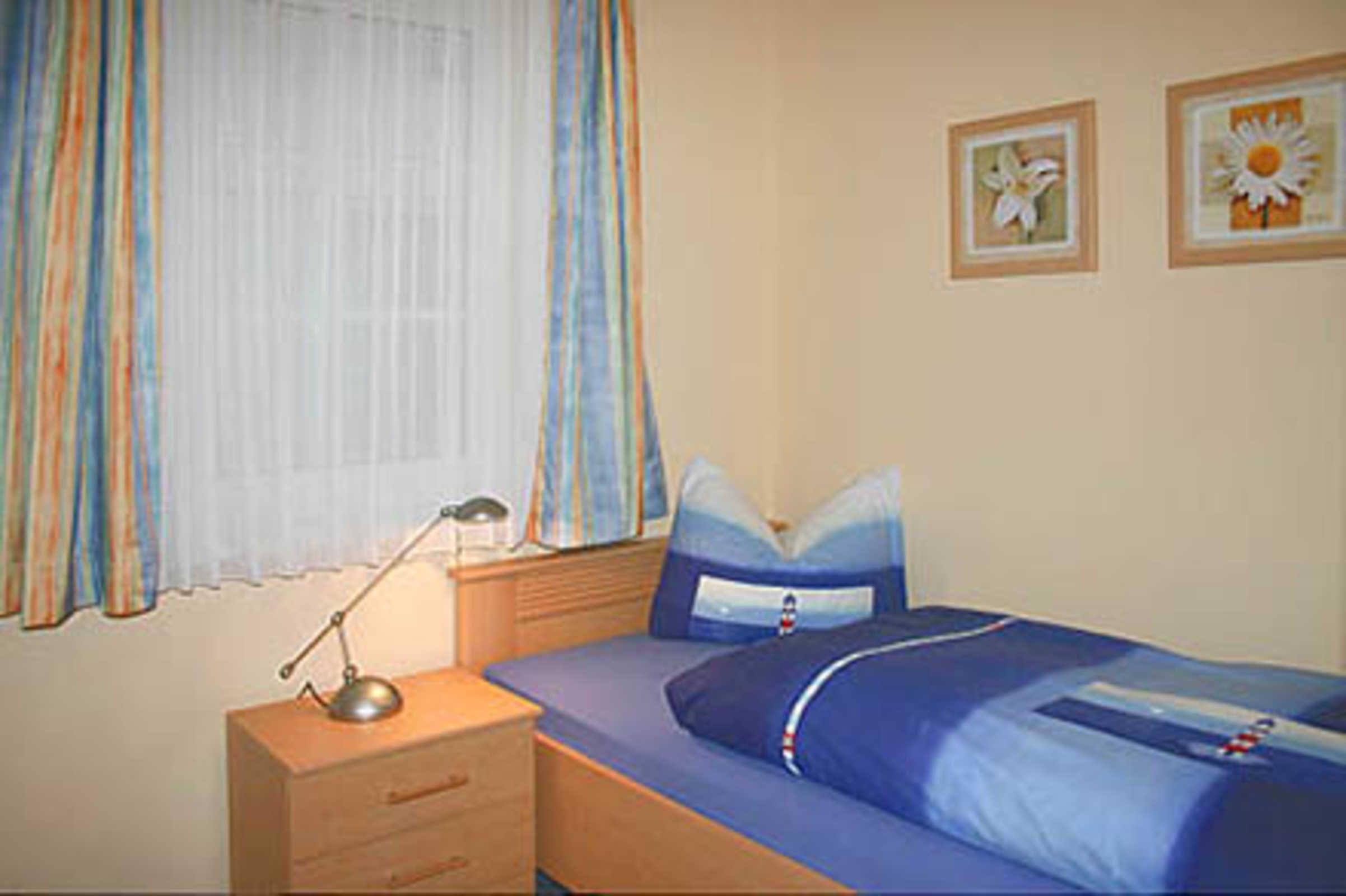 Die schöne und modern eingerichtete 3-Zimmerwohnung Nr. 11 befindet sich im Erdgeschoss des Hauses und verfügt über eine große überdachte Terrasse, die Sie zum Frühstücken nutzen können um so Energie für einen tollen Strand- oder erlebnisreichen Ausflugstag zu tanken. Die Nichtraucherwohnung verfügt über eine Größe von ca. 50 qm und ist mit bis zu 3 Personen belegbar. Die helle Wohnung verfügt über einen vorgelagerten Flur mit einer Garderobe, einem gemütlichen Wohnbereich mit Wohnküche sowie einen Essplatz, zwei Schlafzimmer und ein Tageslichtbad. Im Wohnbereich erwartet Sie eine bequeme Sitzecke. Zudem gelangen Sie vom Wohnzimmer aus auf die möblierte Terrasse. Die technische Einrichtung umfasst einen Flachbildfernseher, ein Radio mit CD-Player sowie einen gebührenfreien WLAN-Zugang. In der ausgestatteten Küchenzeile erwartet Sie unter anderem ein Backofen, Mikrowelle, 4 Plattenkochfeld, Kühlschrank, Kaffeemaschine, Toaster, Wasserkocher sowie umfangreiches Kücheninventar. Das Schlafzimmer verfügt über ein großes Doppelbett mit Nachttischen, einen Kleiderschrank mit Spiegel sowie Verdunklungsvorhänge für eine erholsame Nachtruhe. Das zweite Schlafzimmer erwartet Sie mit einem Einzelbett. Im Bad steht Ihnen eine Dusche, Waschtisch, Kosmetikspiegel und WC zur Verfügung. Für unsere kleinen Gäste stellen wir gern auf Anfrage ein Kinderreisebett sowie einen Hochstuhl bereit.
