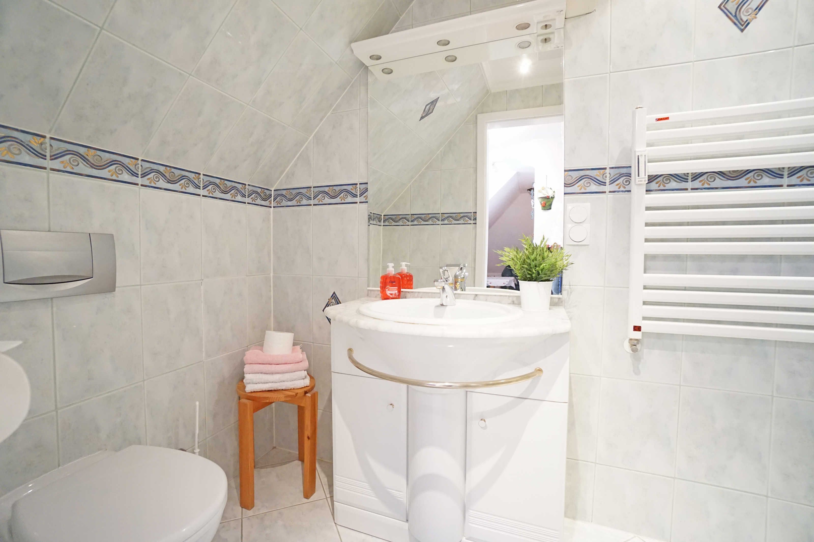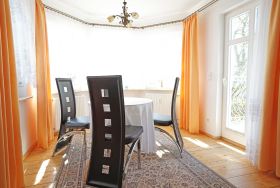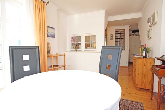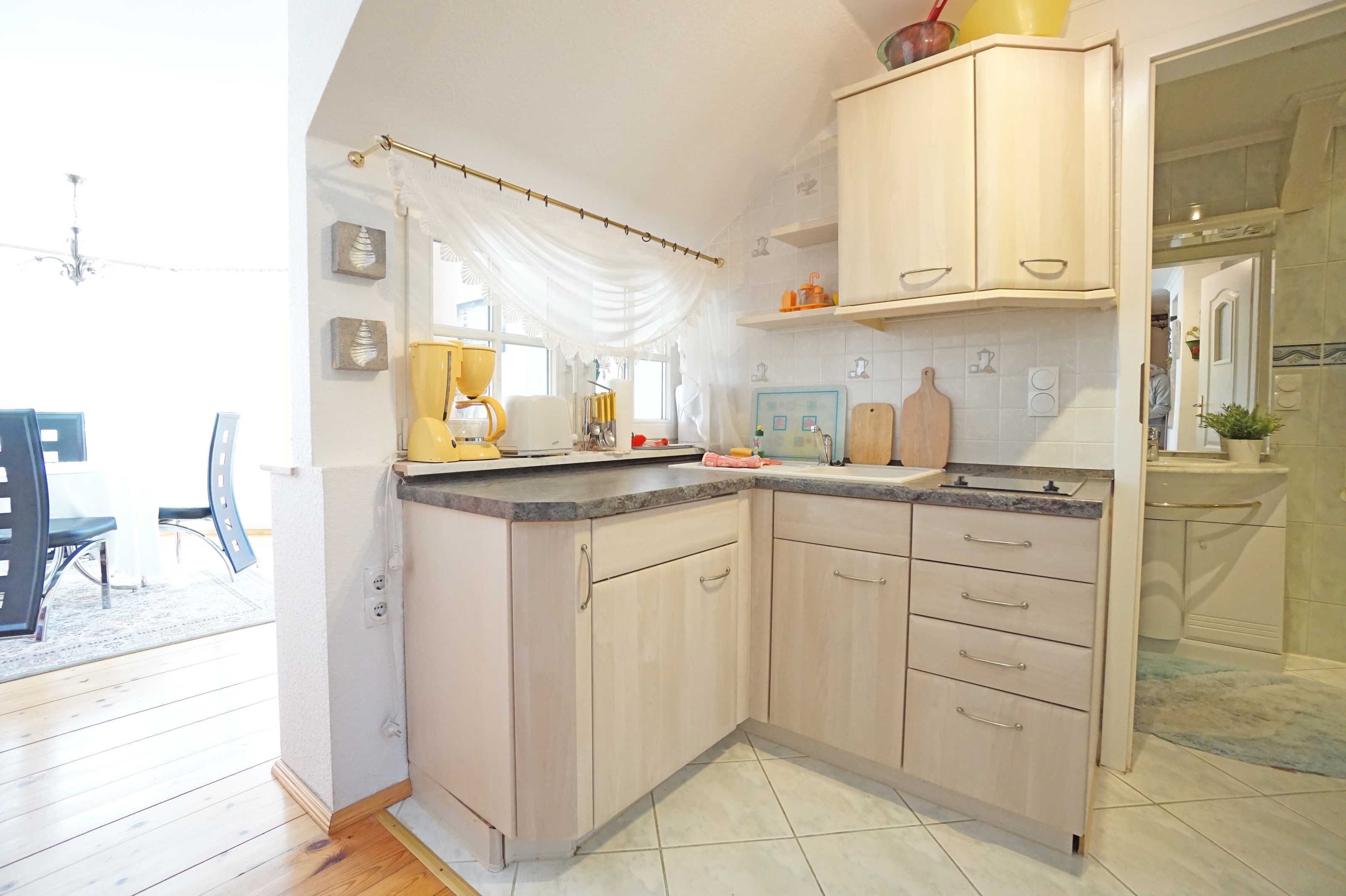 Die gemütlich eingerichtete, helle 2-Zimmer-Maisonettewohnung (62m²) befindet sich im zweiten Obergeschoss des Hauses. Die Nichtraucherwohnung verfügt über ein Wohn- und Esszimmer mit großem Esstisch, Schlafcouch, Flachbildfernseher und offener Küchenzeile (Kochmodul, Kühlschrank mit Gefrierfach). Über eine kleine, relativ steile Treppe erreichen Sie das Schlafzimmer, welches mit einem Doppelbett (140x200cm) und einem Einzelbett ausgestattet ist. Ein geräumiger, sonniger Südbalkon rundet dieses schöne Appartement ab. Ein Duschbad ist vorhanden.