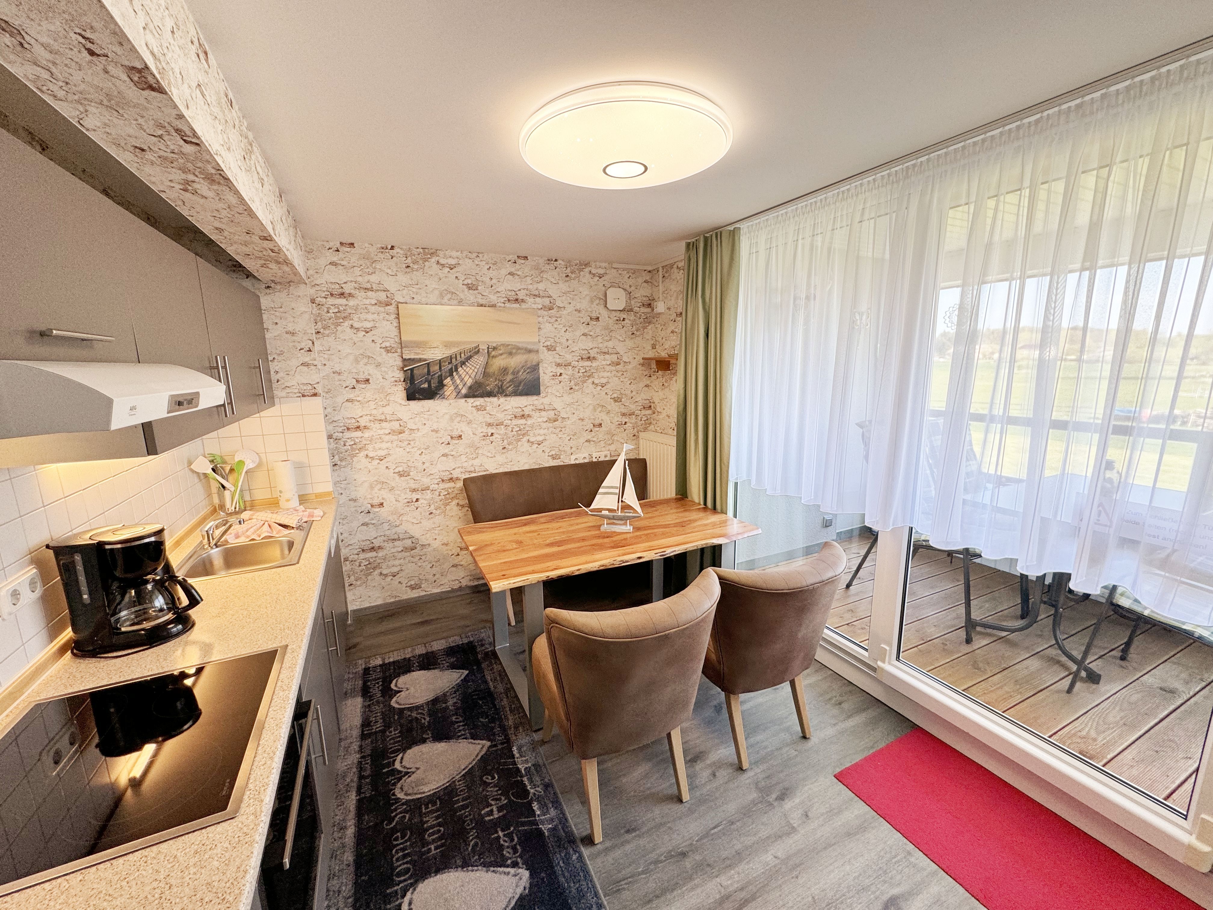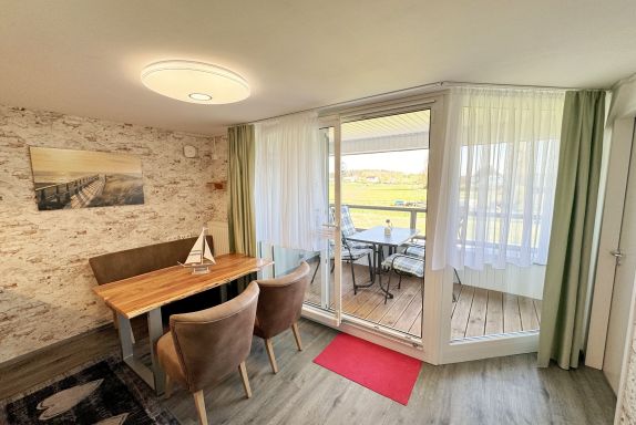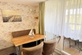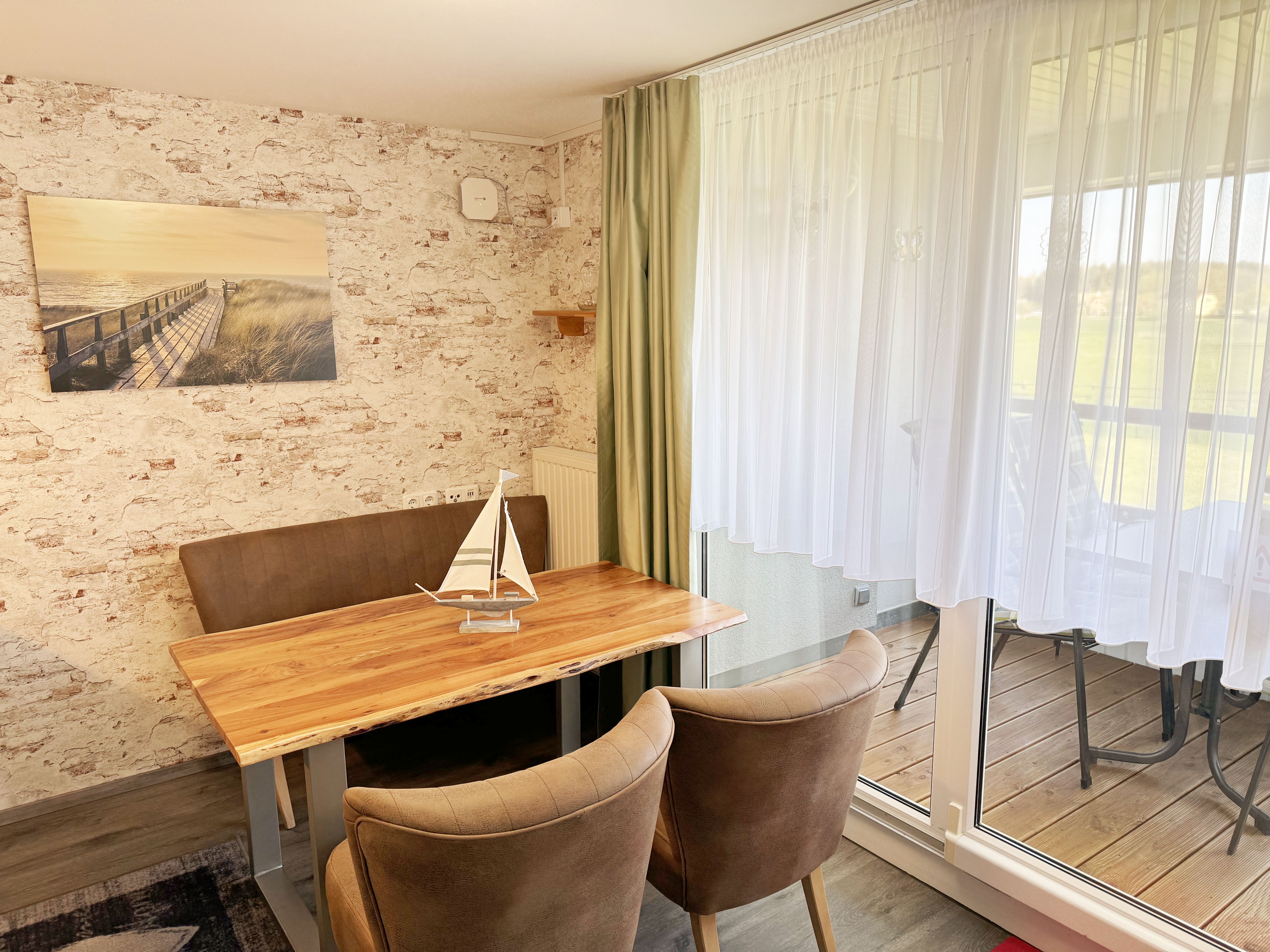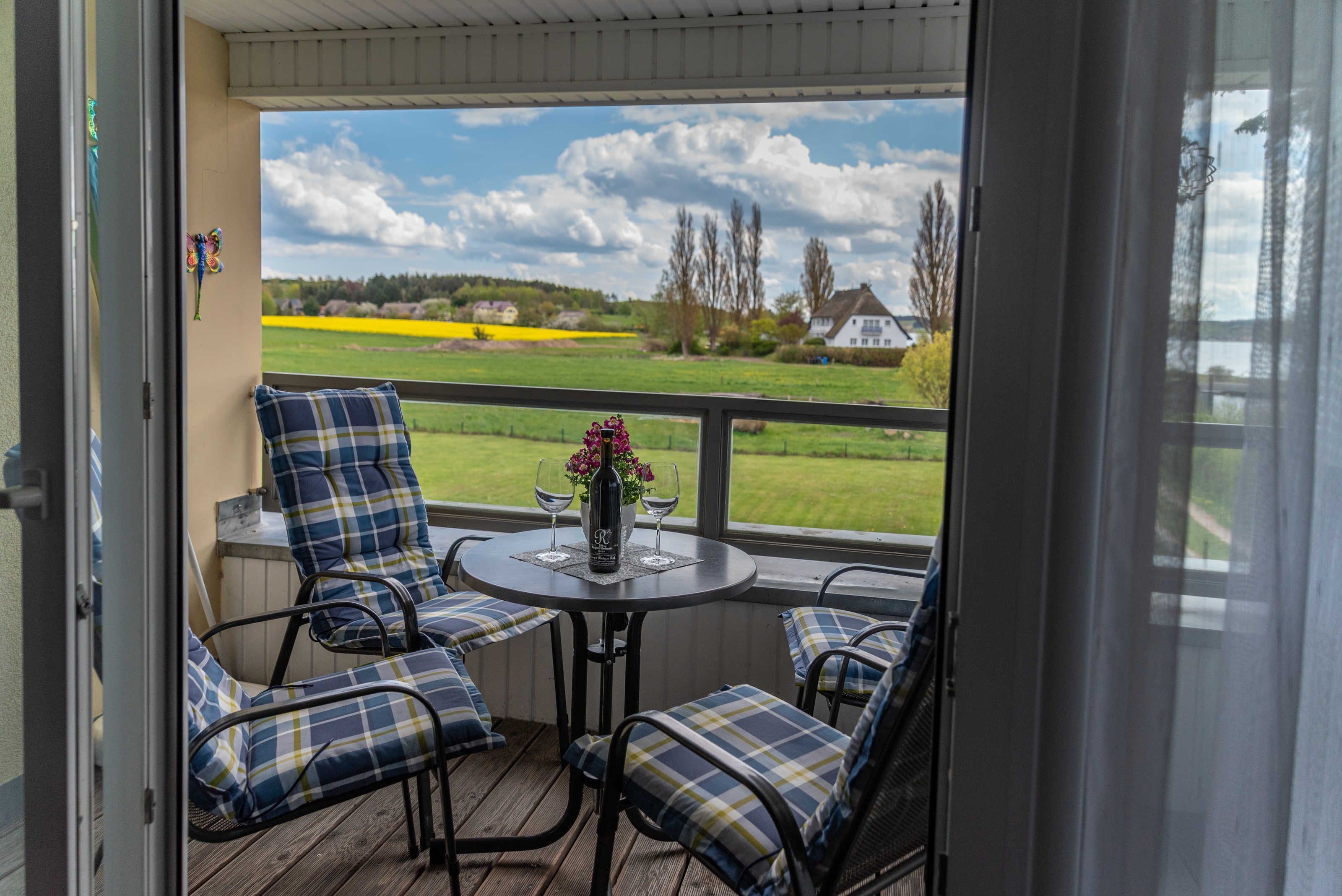 Die gut geschnittene Nichtraucherwohnung Nr.06 befindet sich im Obergeschoß des Hauses. Mit Ihren ca. 50 m² Wohnfläche mit Balkon und direktem Blick über die großzügige hauseigene Freifläche auf den Bodden, bietet sie ausreichend Platz für max. 2 bis 4 Erwachsene + 1 Kleinkind bis 3 Jahre im Kinderreisebett. Die Wohnung wurde komplett renoviert und mit einem hochwertigen PVC freiem Vinyl verlegt. Die offene und vollausgestattete Küchenzeile mit einem 4 Zonencerankochfeld, Geschirrspüler, Backofen, Kühlschrank mit Gefrierfach, Mikrowelle, Toaster, Wasserkocher, Kaffeemaschine, Dolce Gusto Maschine sowie kleinen Küchenhelfern wird mit einem gemütlichen Essplatz komplettiert. Vom Küchenbereich gelangen Sie auf den überdachten und bestuhlten Balkon (Süd/Ost). Bei schönem Wetter können Sie auch hier Ihre Mahlzeiten, mit einem wundervollen Natur- und Boddenblick genießen. Im ersten Schlafzimmer erwartet Sie ein großes Doppelbett mit Einzelmatratzen (1,80m x 2,00m), Nachttischablagen mit Leselampen, Smart-TV, einen geräumigen Kleiderschrank und Safe für Ihre Wertsachen und ein Sideboard für Ihre Wäsche sowie Ablage. Für einen erholsamen Schlaf sorgen Verdunklungsgardinen und Insektenschutzgitter. Das zweite Schlafzimmer verfügt ebenfalls über ein Doppelbett mit Einzelmatratzen (1,80m x 2,00 m), Leselampe und 17 Zoll LED-TV. Eine Hifi Microanlage mit CD-Player, MP3, UKW-Funktion, USB und Bluetooth mit NFC, ein DAB-Radio sowie ein inklusiver WLAN-Anschluss runden den technischen Bereich ab. Das große Tageslicht-Bad ist mit einem WC, einer ebenerdigen Dusche, einem Waschtisch, Fön, Kosmetikspiegel, einem großen Wandspiegel, Handtuchheizkörper und einem Ablageregal ausgestattet. Ein Haustier ist gegen eine Gebühr ein gern gesehener Gast. Da Haustiere erfahrungsgemäß Ihre eigenen Sachen lieben, bringen Sie hier bitte Schlafkörbchen, Wasser- und Fressnapf mit. Sollte Ihnen doch einmal Strandsand ins Haus geraten oder etwas runterfallen, ist jede Wohnung mit einem Staubsauger und anderen Reinigungsgeräten ausgestattet. Für Ihre Fahrräder finden Sie am Giebel des Hauses (unter Whg 5) einen Fahrradständer zum Anschließen. Die Grünfläche des Hauses lädt zu geselligen Abenden mit weiteren Hausgästen ein. Ein Standgrill steht für unsere Gäste im Gartenhaus zur Verfügung. Bitte beachten Sie jedoch, dass das Grillen auf den Holzterrassen aus brandschutztechnischen Gründen nicht erlaubt ist. Hier finden Sie aber ausreichend Platz auf dem Außengelände, welches auch über einen kleinen Kinderspielplatz, Sandkiste und einer Tischtennisplatte verfügt. Ein PKW-Stellplatz (Nr.06) steht Ihnen inklusive am Haus zur Verfügung. Die Erstausstattung eines Wäschepaketes (komplette Bettwäsche, 1 Duschhandtuch, 1 kleines Handtuch, 1 Duschvorleger) können Sie bis 14 Tage vor Anreise gegen einen Aufpreis dazu buchen oder durch eigene ergänzen.1 Geschirrhandtuch gehört zu jedem Aufenthalt dazu.
