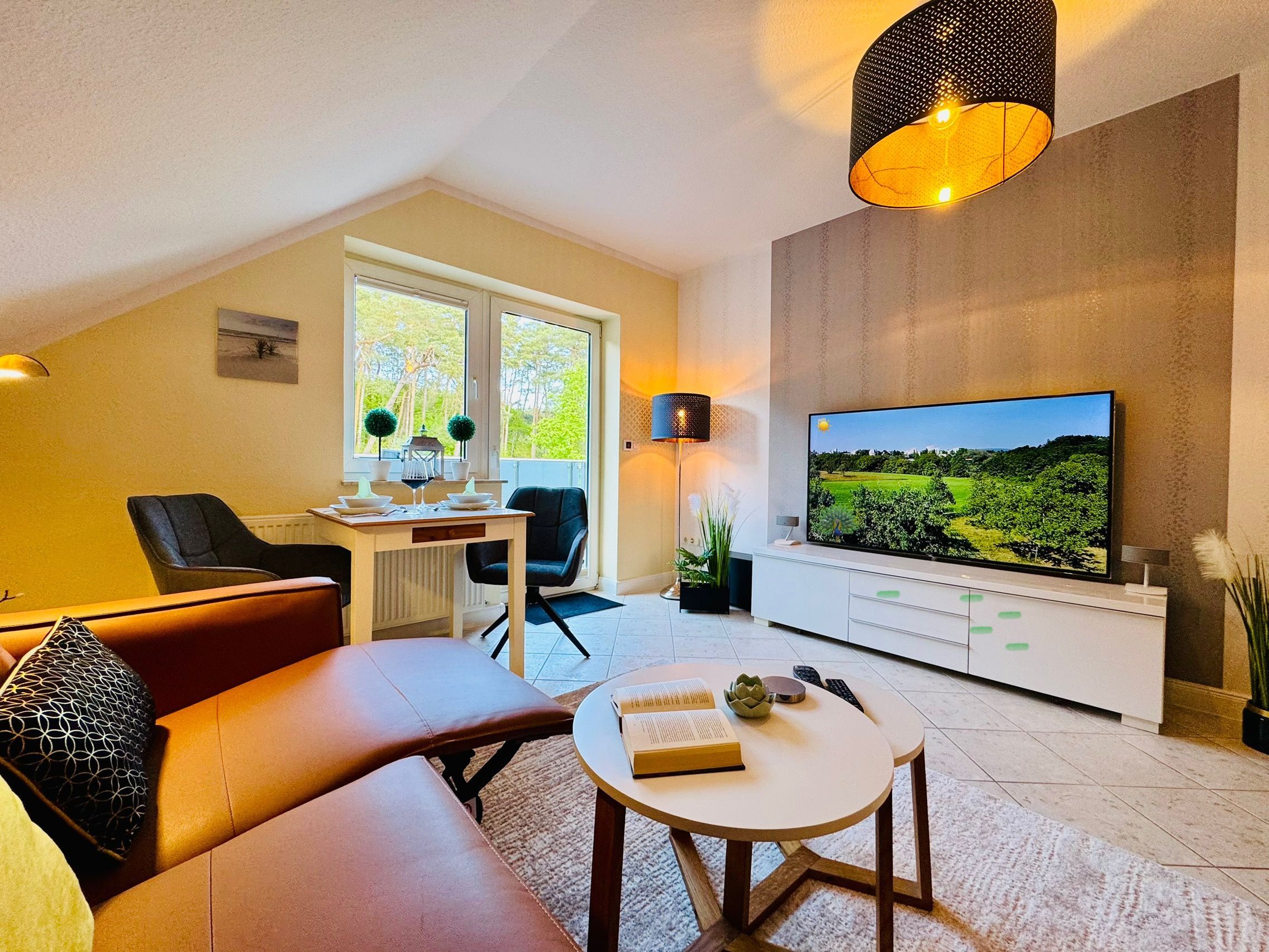 Herzlich willkommen in Ihrem modernen Feriendomizil! Auf 45 m² Wohnfläche erwartet Sie ein stilvoll eingerichtetes 2-Raum-Apartment, das keine Wünsche offenlässt. Highlight: die ca. 25 m² große, sonnige Terrasse perfekt für ausgedehnte Mahlzeiten am Esstisch oder entspannte Stunden auf den komfortablen Liegen. So fühlt sich Urlaub an!