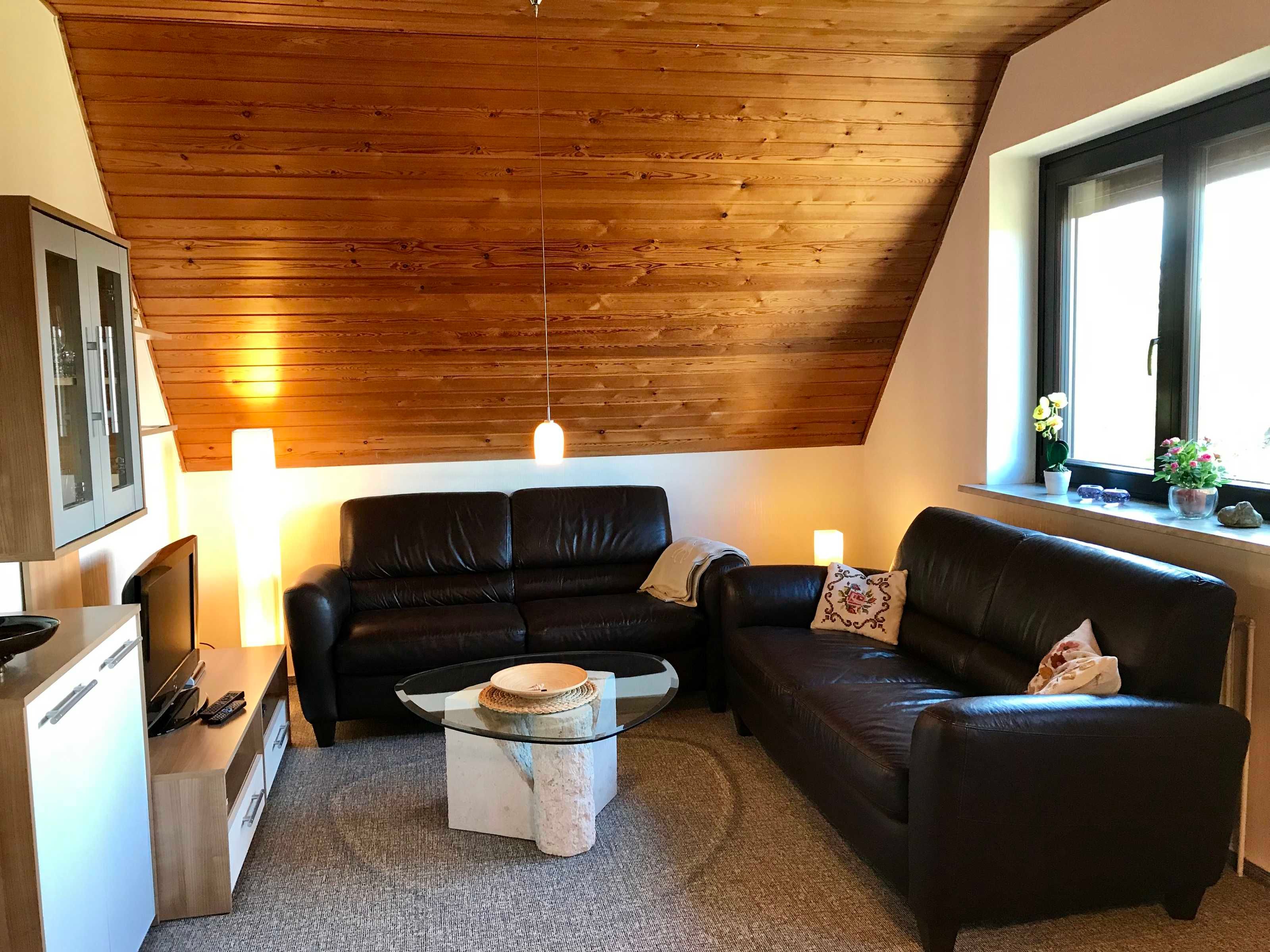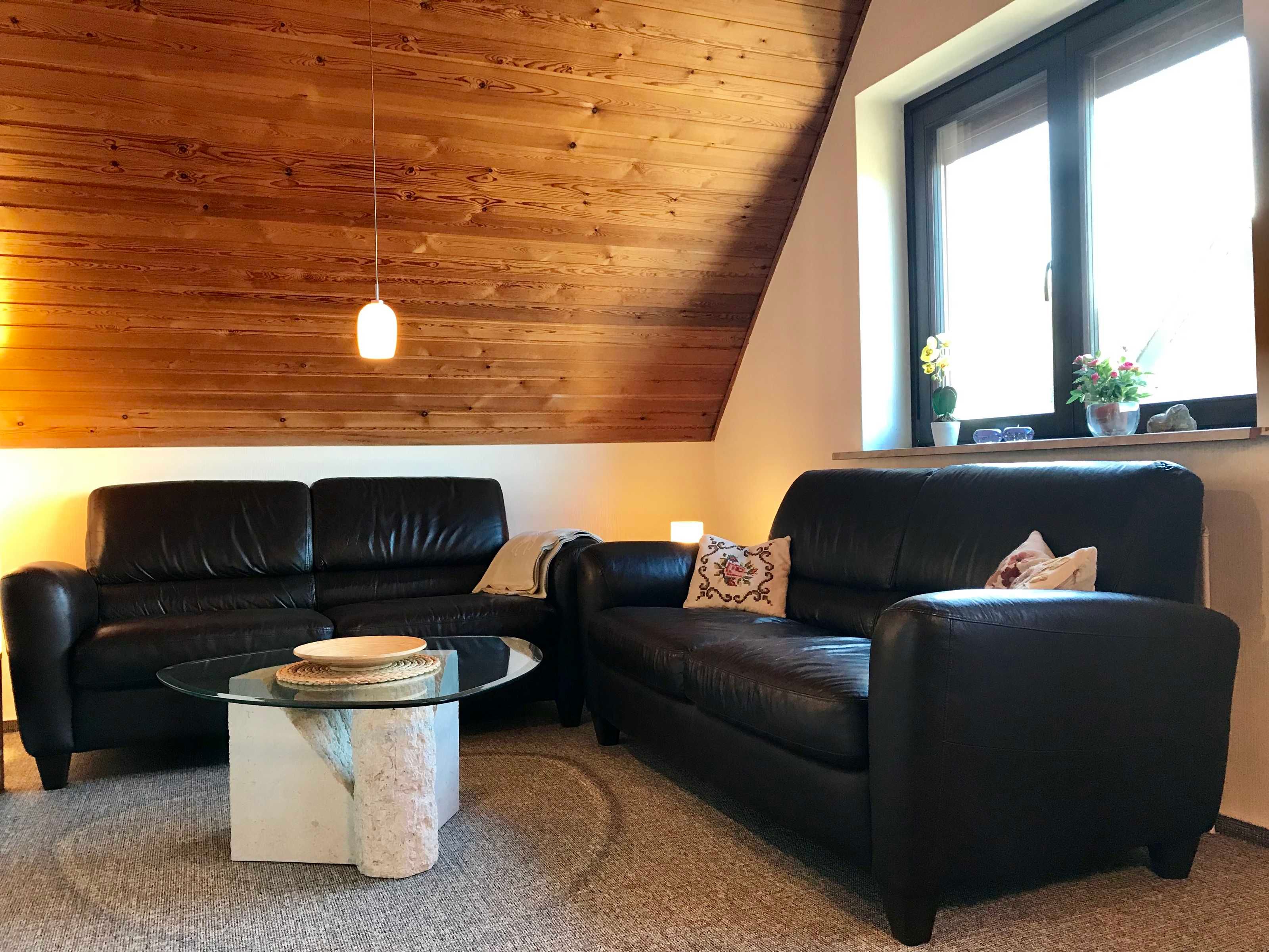 Im Wohnzimmer und Schlafzimmer wurden neue Teppichböden verlegt. Das Wohnzimmer ist ausgestattet mit einem Sofa und Couchtisch, einer Wohnwand mit Flachbild-TV und einem Esstisch mit 6 Sitzmöglichkeiten für 6 Personen.