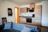 In der im Erdgeschoss gelegenen 60 qm großen Ferienwohnung Mühlenstube sind Originalteile aus einer alten Mühle verbaut. Die Wohnung ist für bis zu 4 Personen geeignet und verfügt über eine Terrasse, einen Wohnraum mit offener Küche, zwei Schlafzimmer (1x mit Doppelbett, 1x mit Etagenbett) und ein Bad mit Dusche und WC.