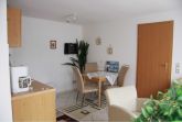Unsere Ferienwohnungen 1 und 2, geeignet für 2 bis 3 Personen, sind hell, freundlich und mit viel Liebe zum Detail eingerichtet. Der Wohnraum mit integriertem Küchenbereich ist ausgestattet mit einer Sitzgarnitur zum Fernsehen (Kabel-TV) und Entspannen sowie einem Esstisch mit Stühlen zum bequemen Einnehmen der Mahlzeiten. Ein Radio mit CD-Player vervollständigt die Ausstattung. Die komplett eingerichtete Küchenzeile mit 2-Platten-Herd, Mikrowelle, Kaffeemaschine, Wasserkocher sowie Toaster und entsprechendem Geschirr und Besteck bietet auch im Urlaub gewohnten Komfort. Das Schlafzimmer ist eingerichtet mit einem grossen französischen Bett , mittig getrennt , mit verstellbarem Kopf- und Fussteil und einer Studioliege als Aufbett sowie einem geräumigen Schrank mit Ganzkörperspiegel.